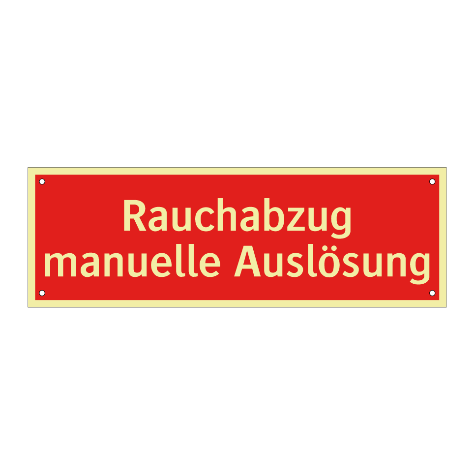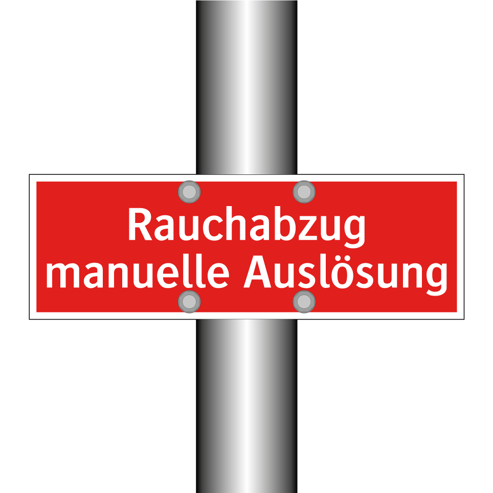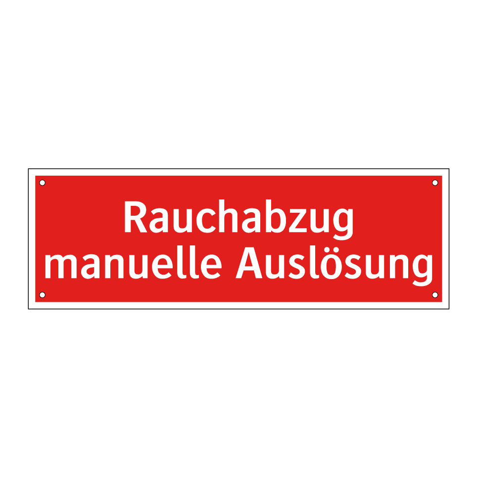 Brandschutzschild mit dem Text Rauchabzug manuelle Auslösung