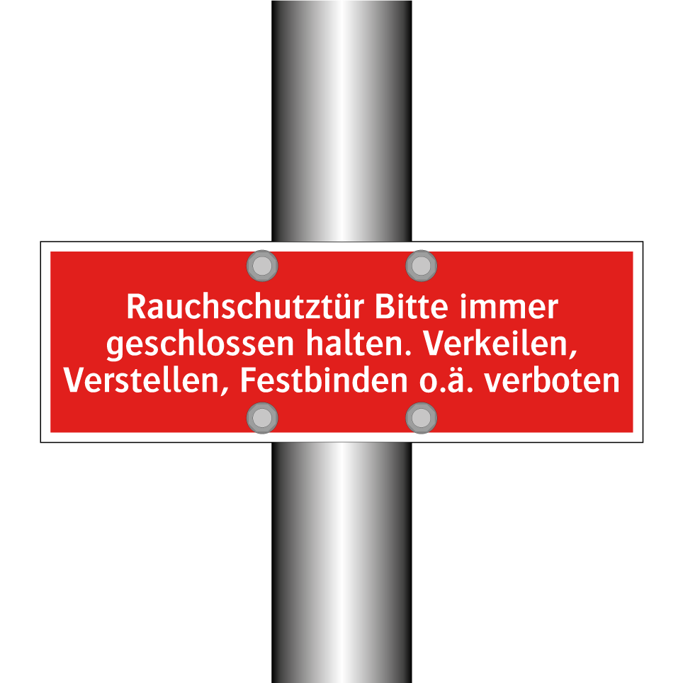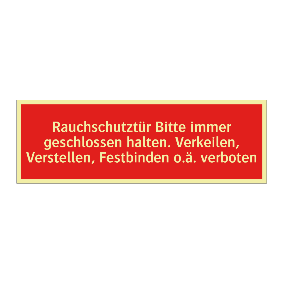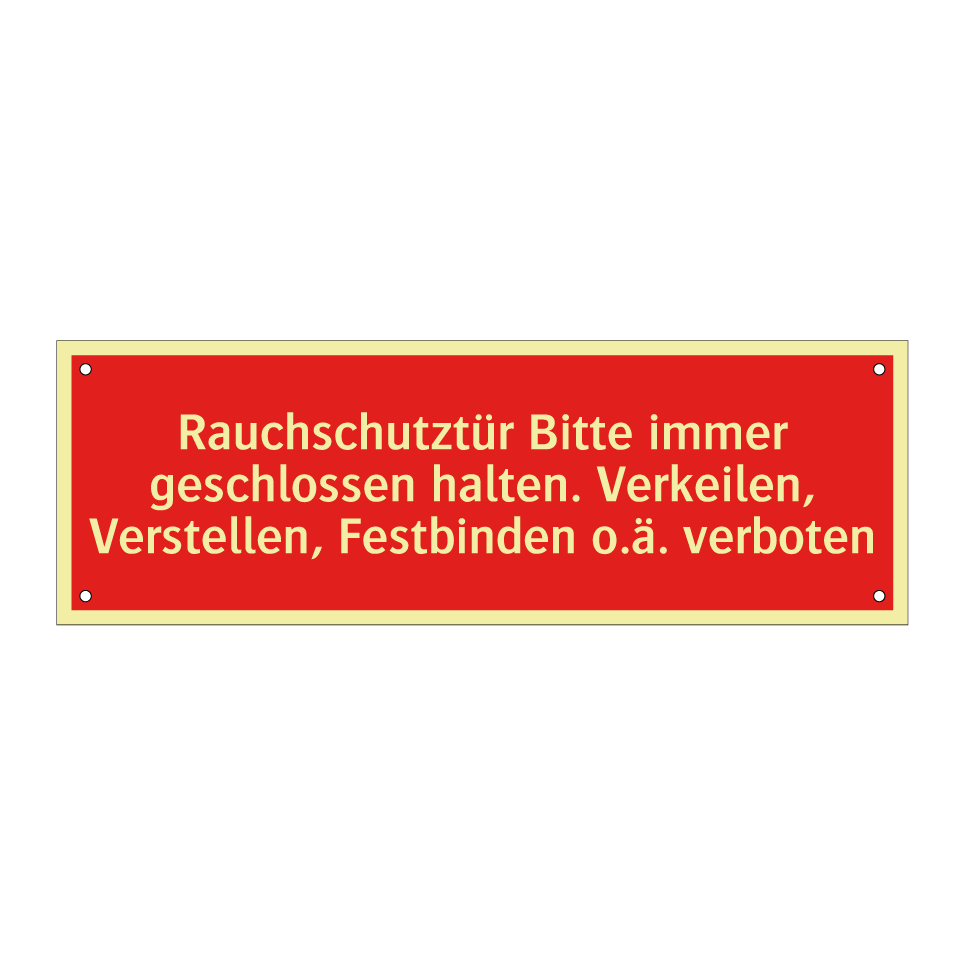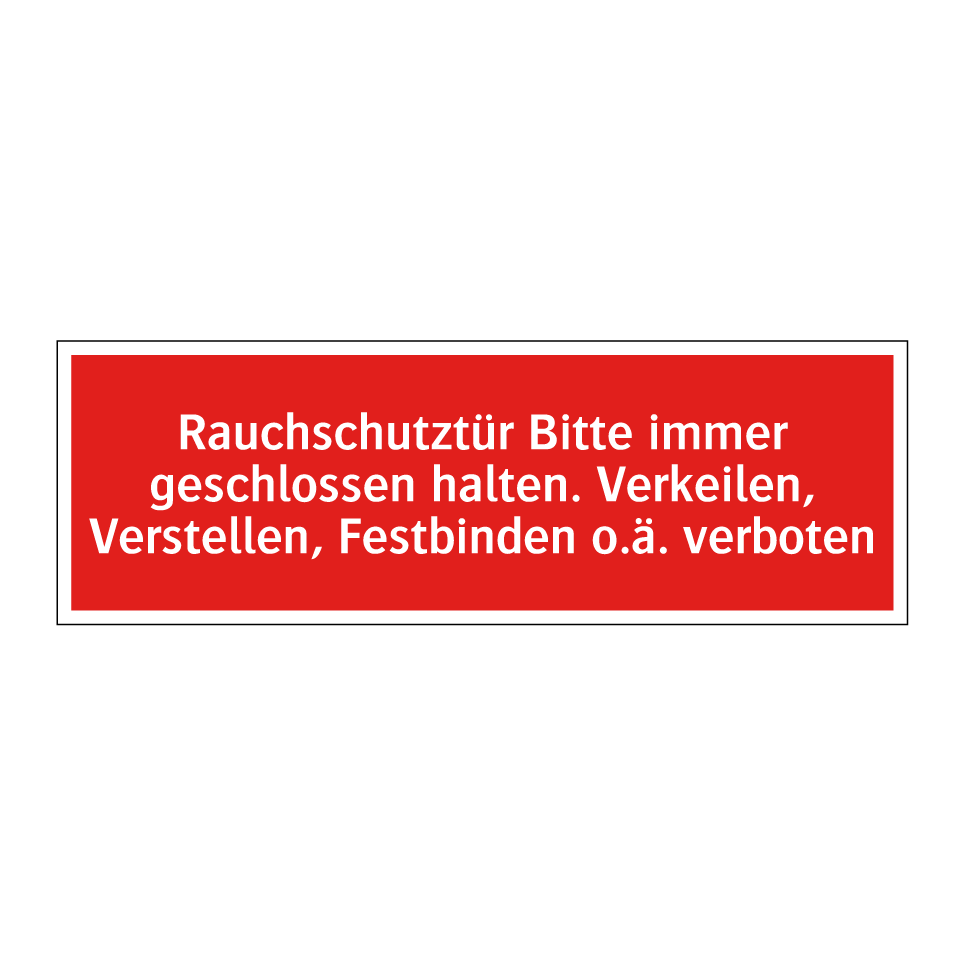 Brandschutzschild mit dem Text Rauchschutztür Bitte immer geschlossen halten. Verkeilen, Verstellen, Festbinden o.ä. verboten