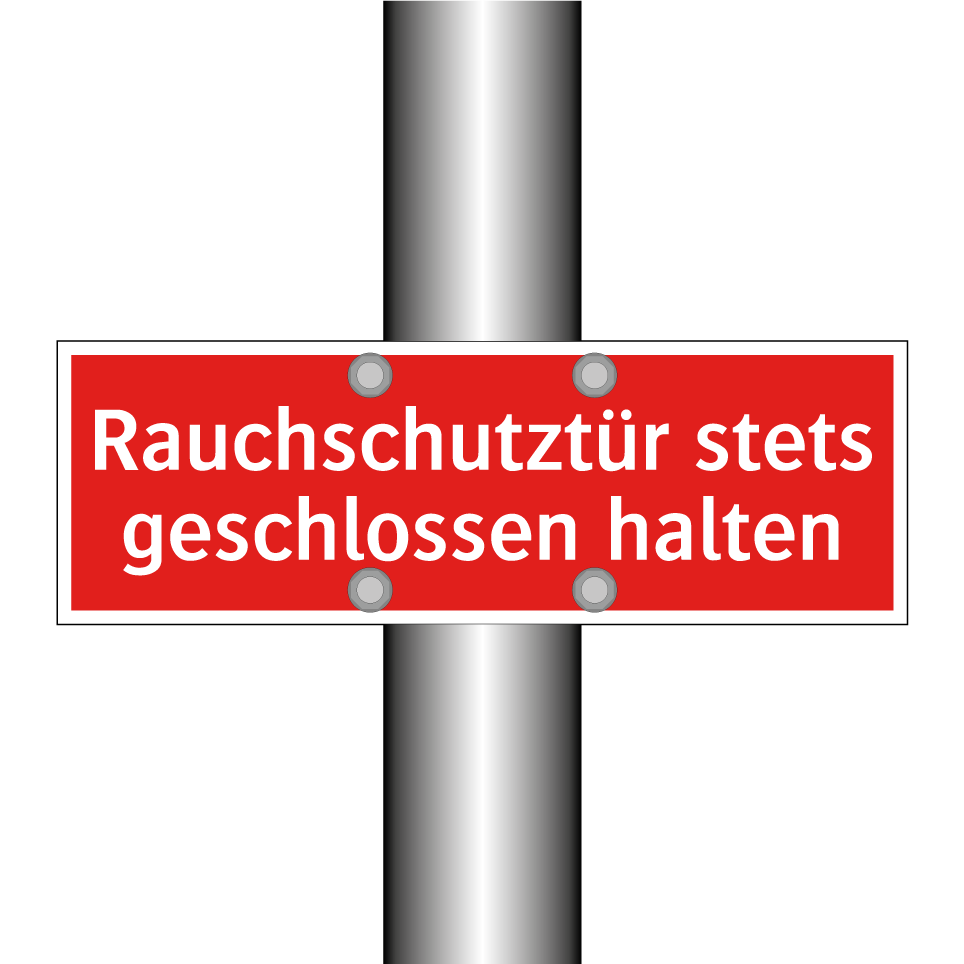 Brandschutzschild mit dem Text Rauchschutztür stets geschlossen halten