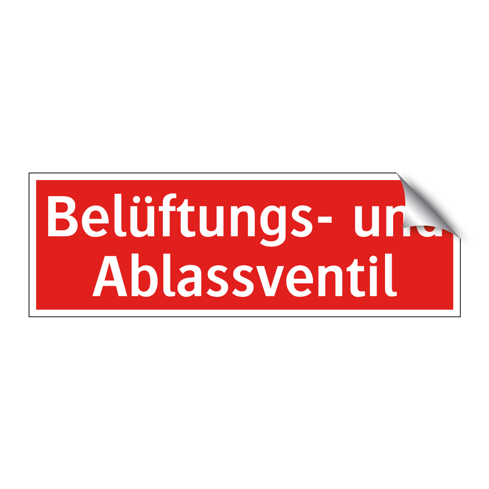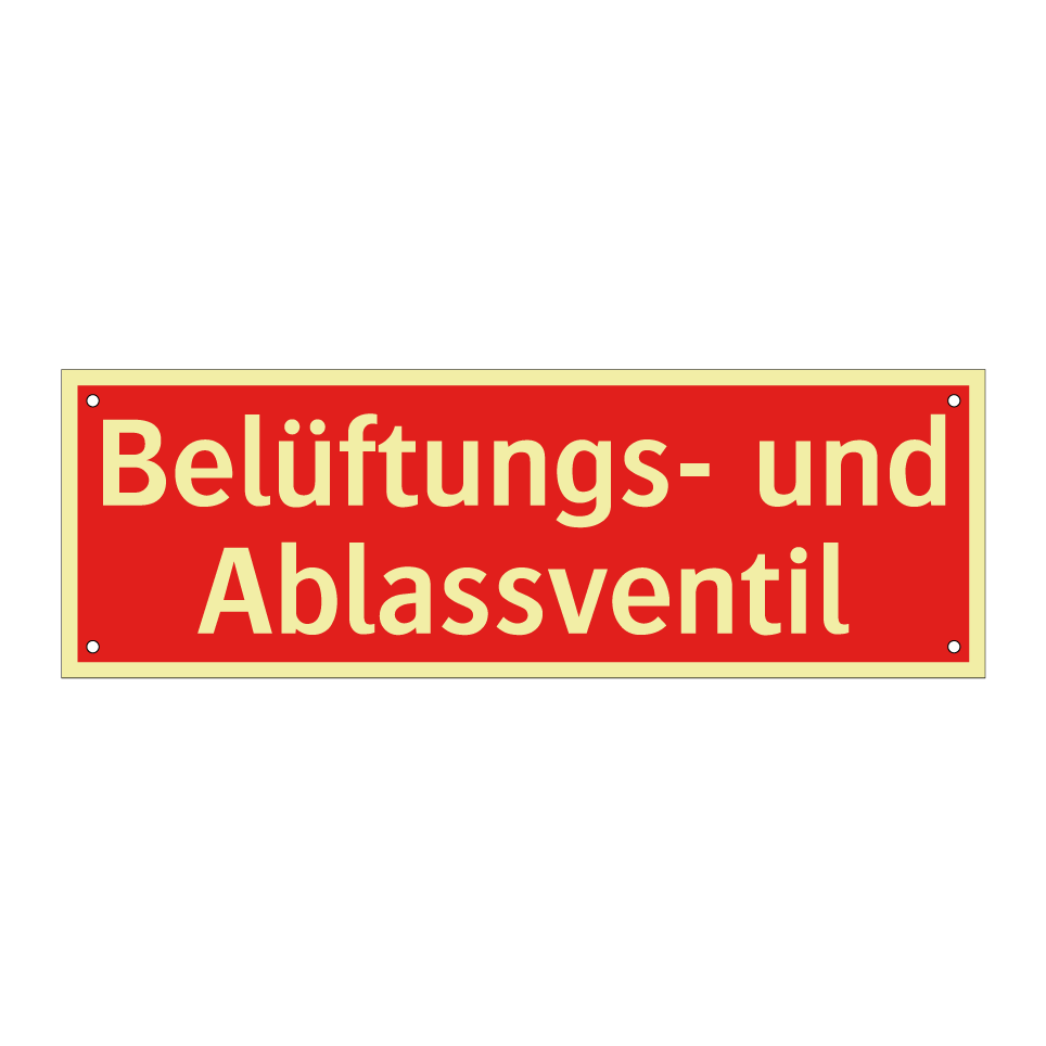 Brandschutzschild mit dem Text Belüftungs- und Ablassventil