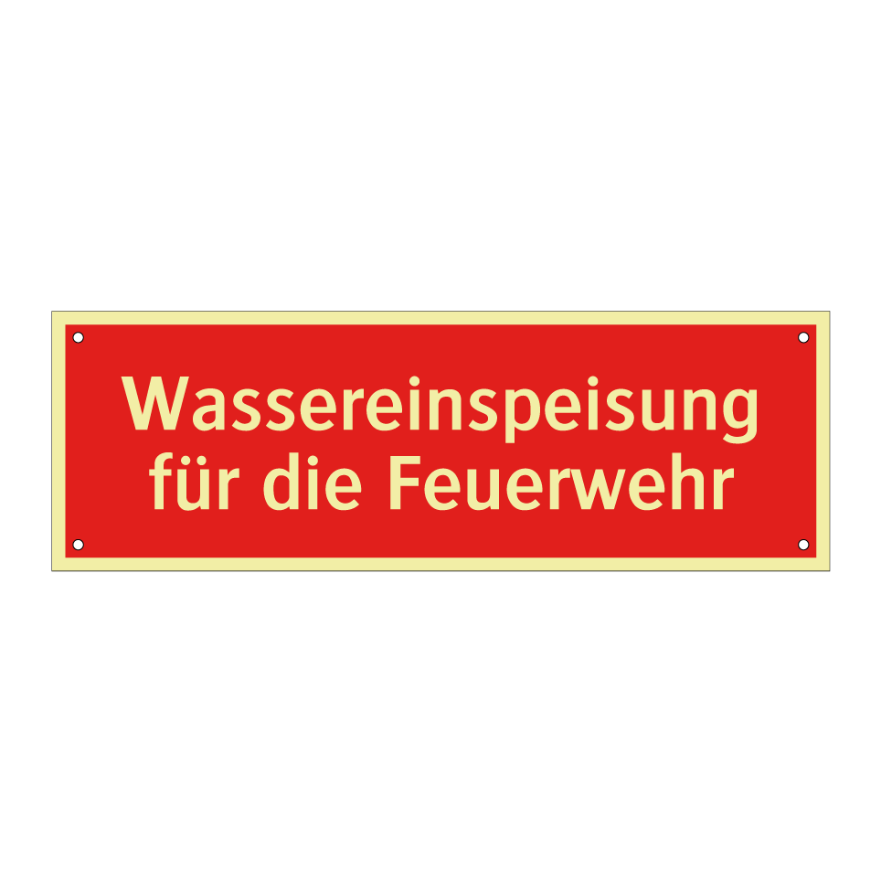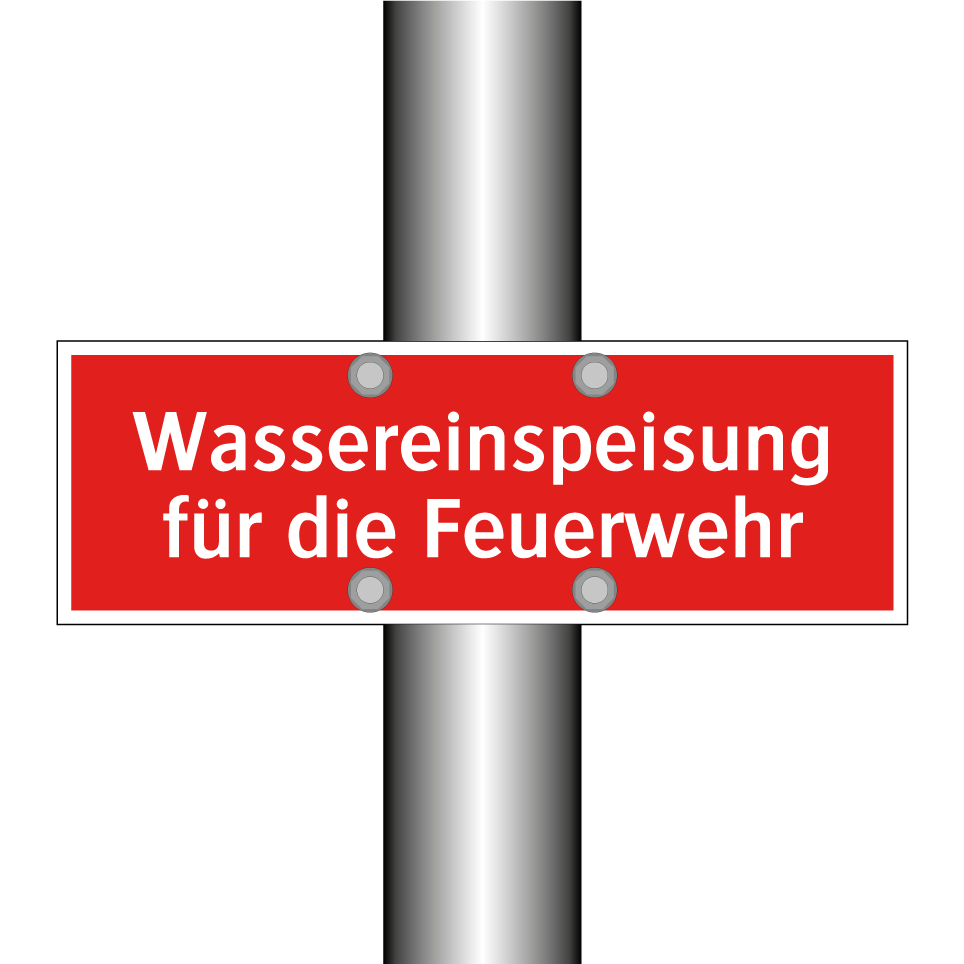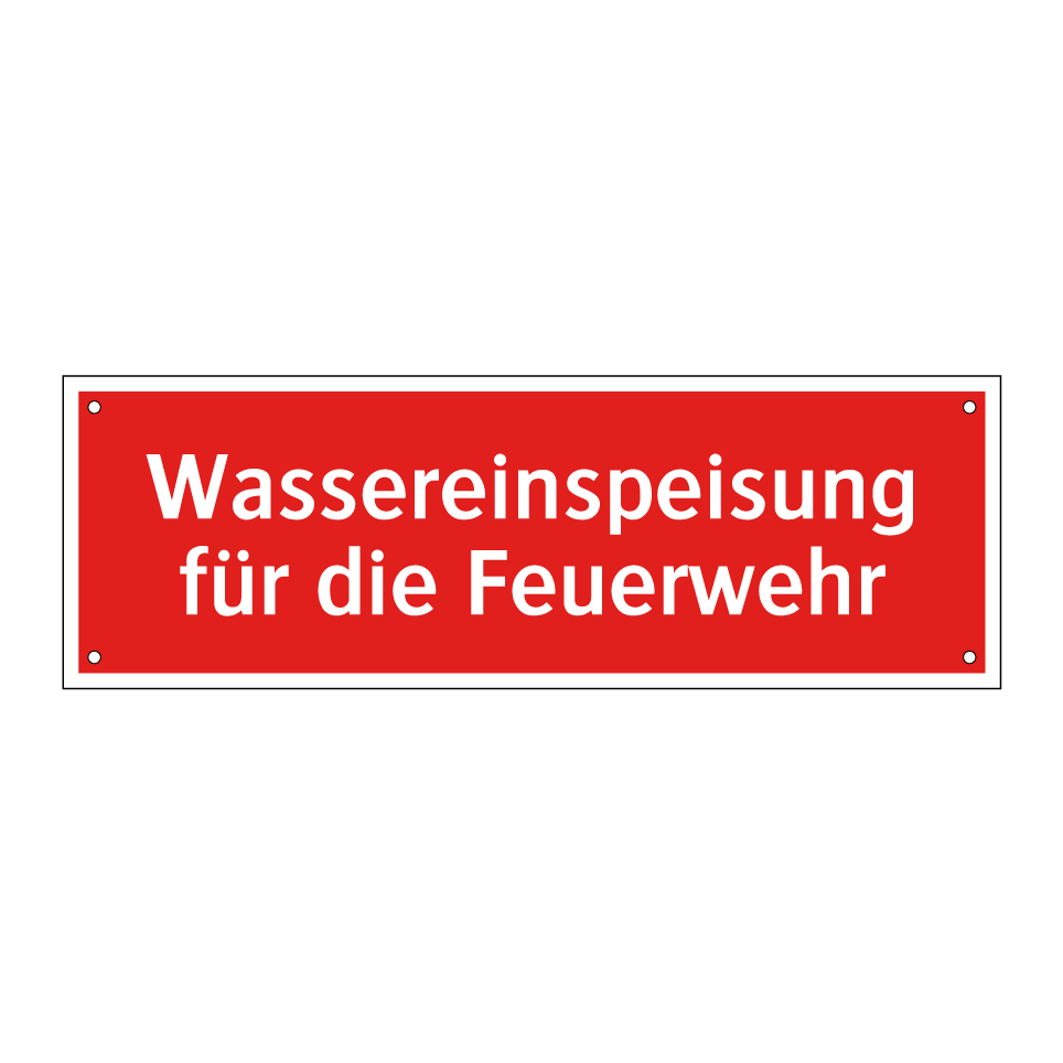 Brandschutzschild mit dem Text Wassereinspeisung für die Feuerwehr