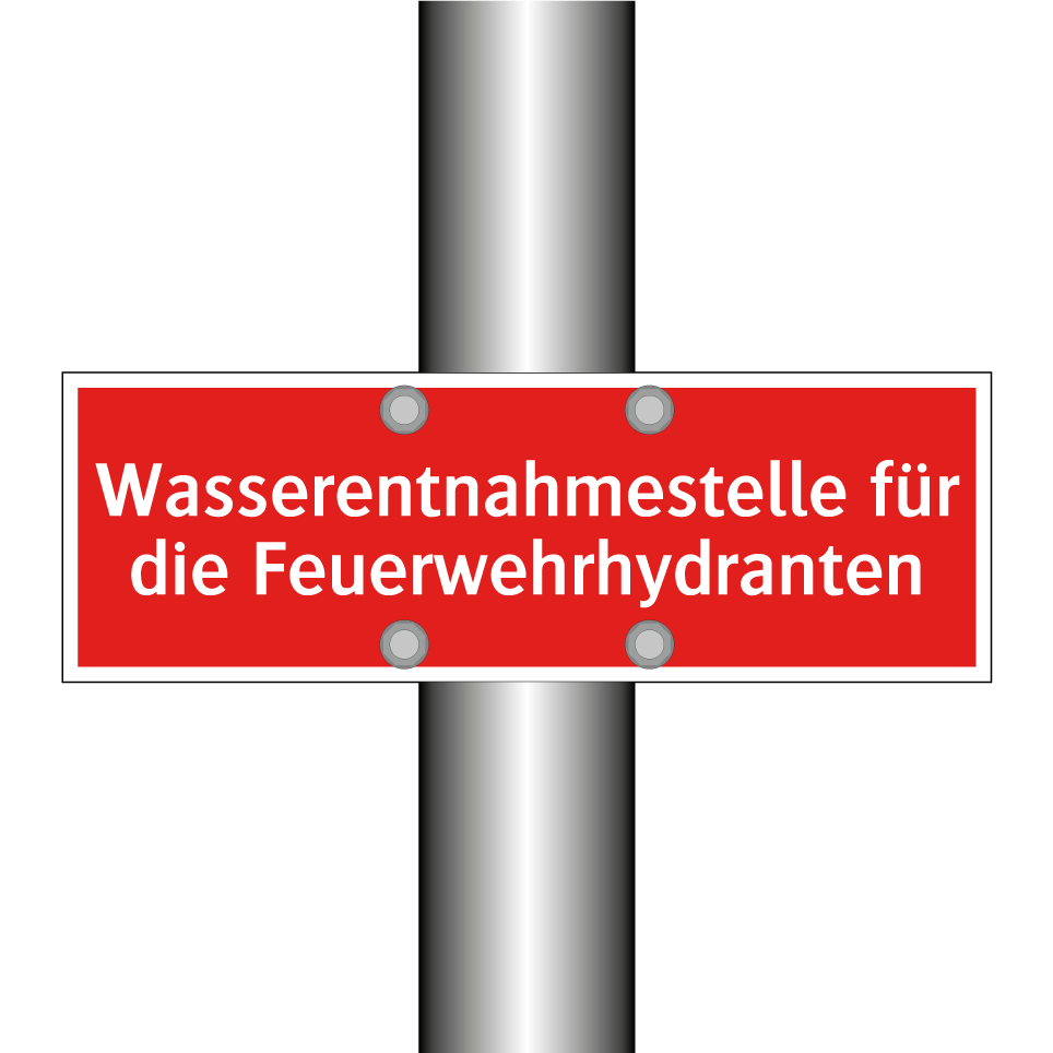 Brandschutzschild mit dem Text Wasserentnahmestelle für die Feuerwehrhydranten