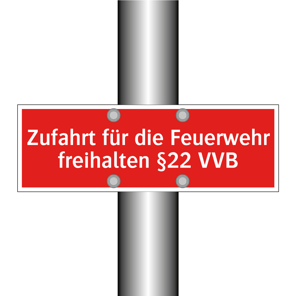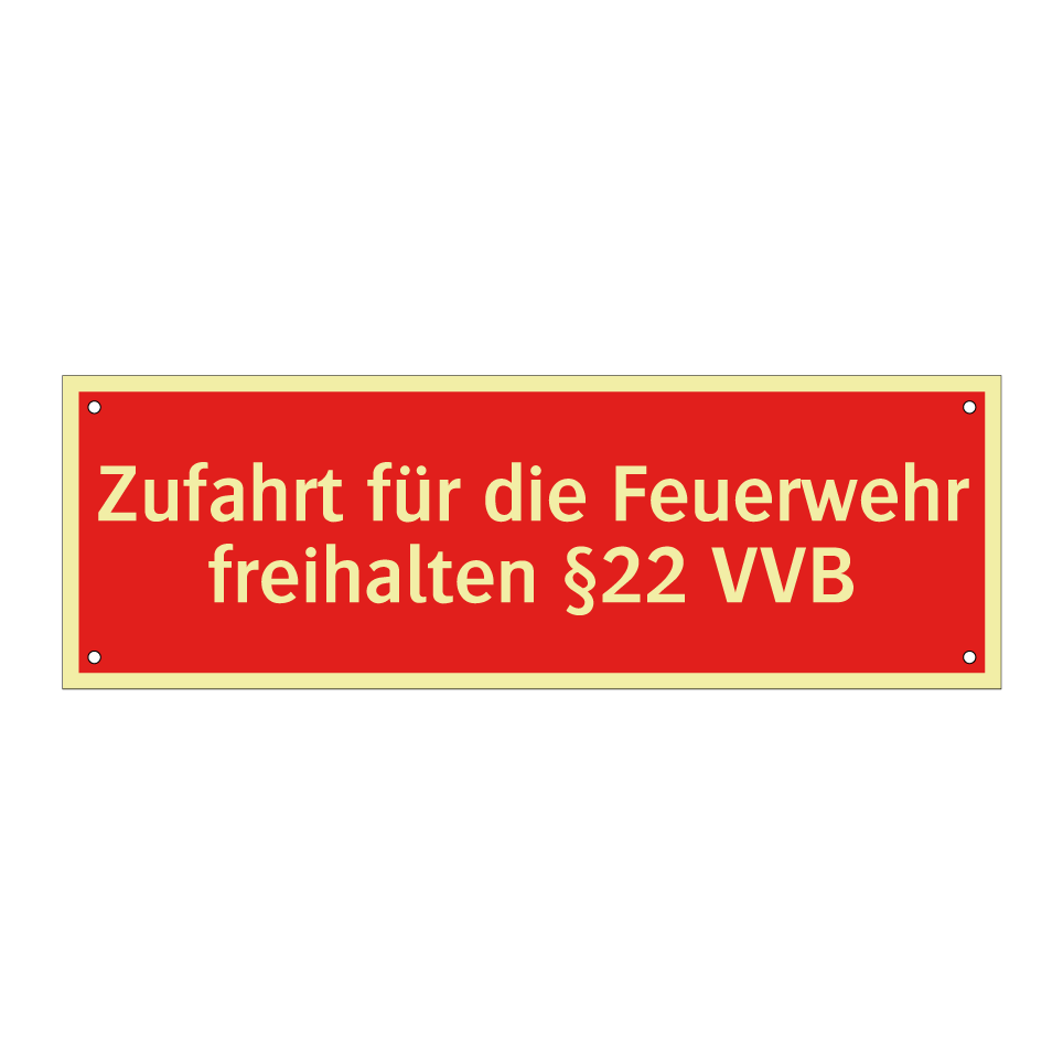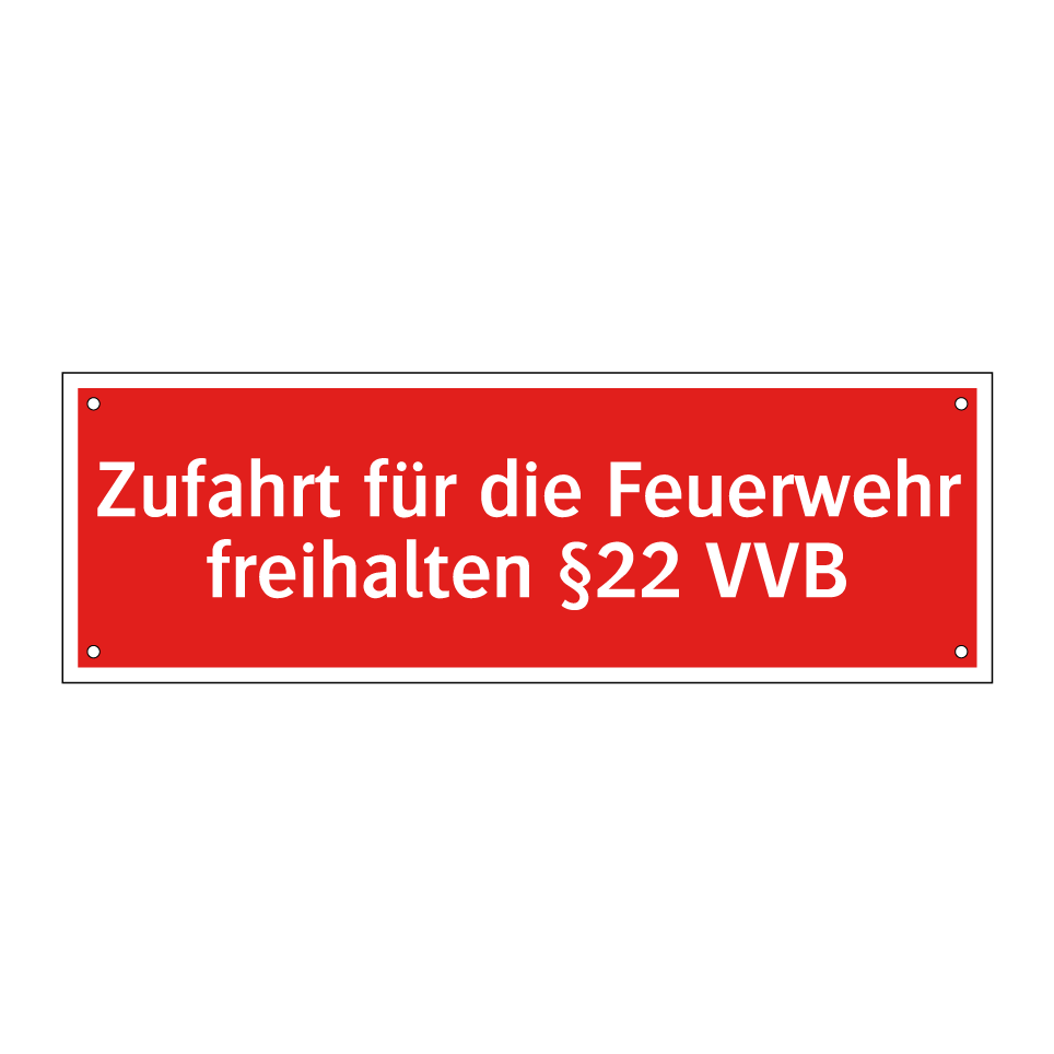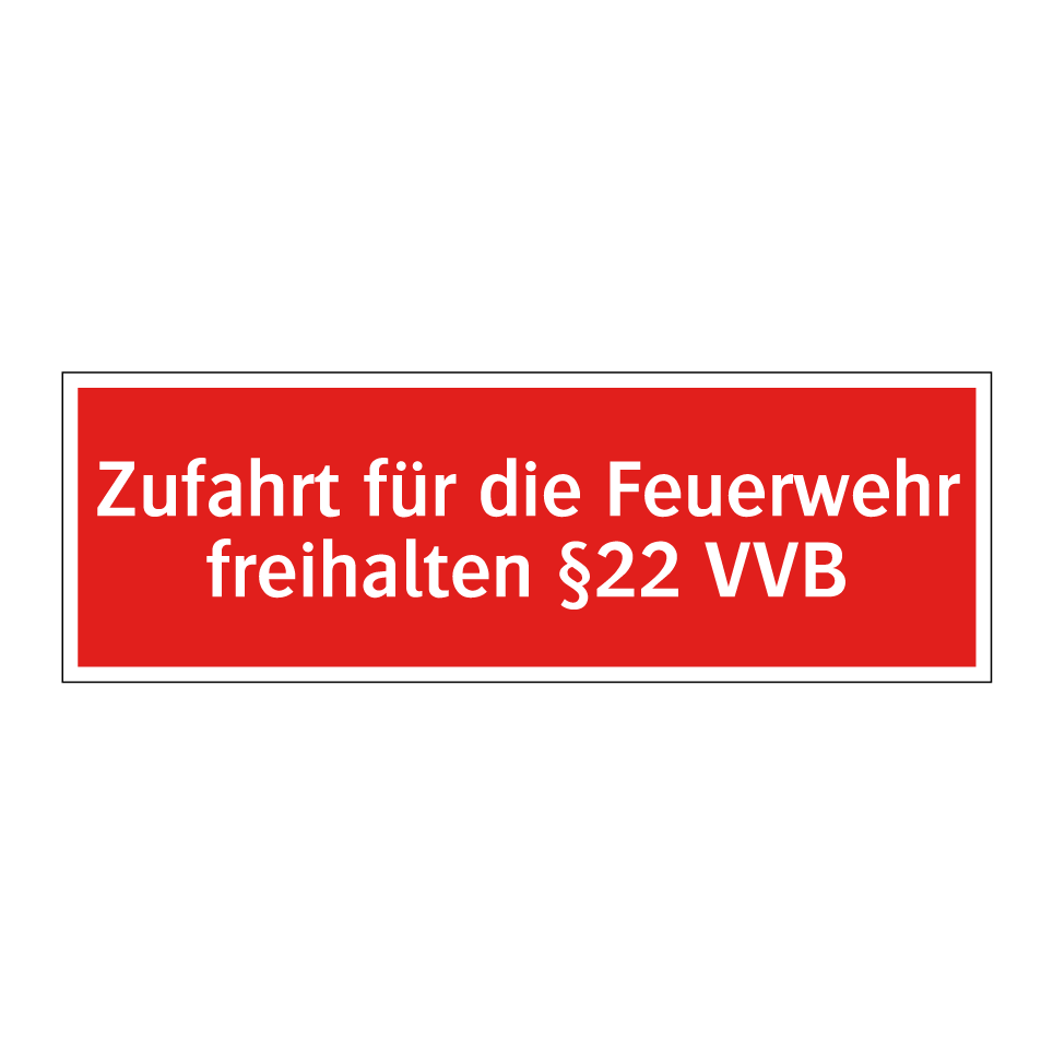 Brandschutzschild mit dem Text Zufahrt für die Feuerwehr freihalten §22 VVB