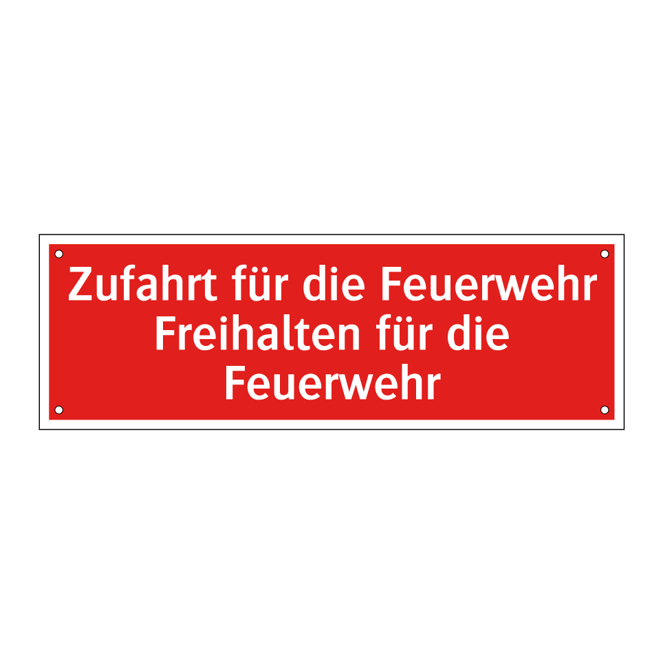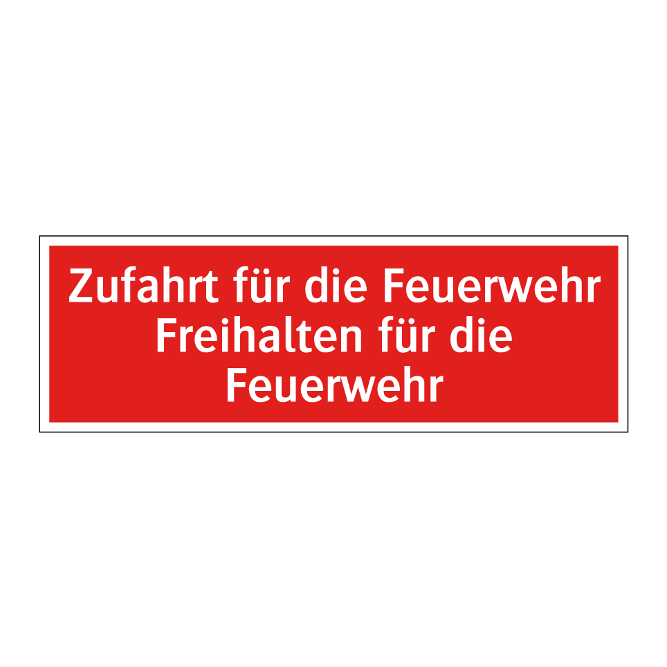 Brandschutzschild mit dem Text Zufahrt für die Feuerwehr Freihalten für die Feuerwehr