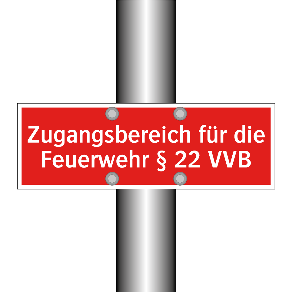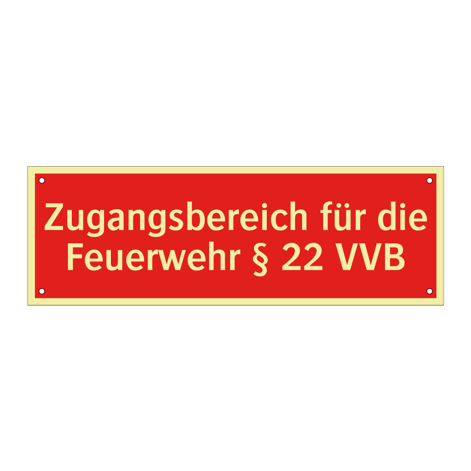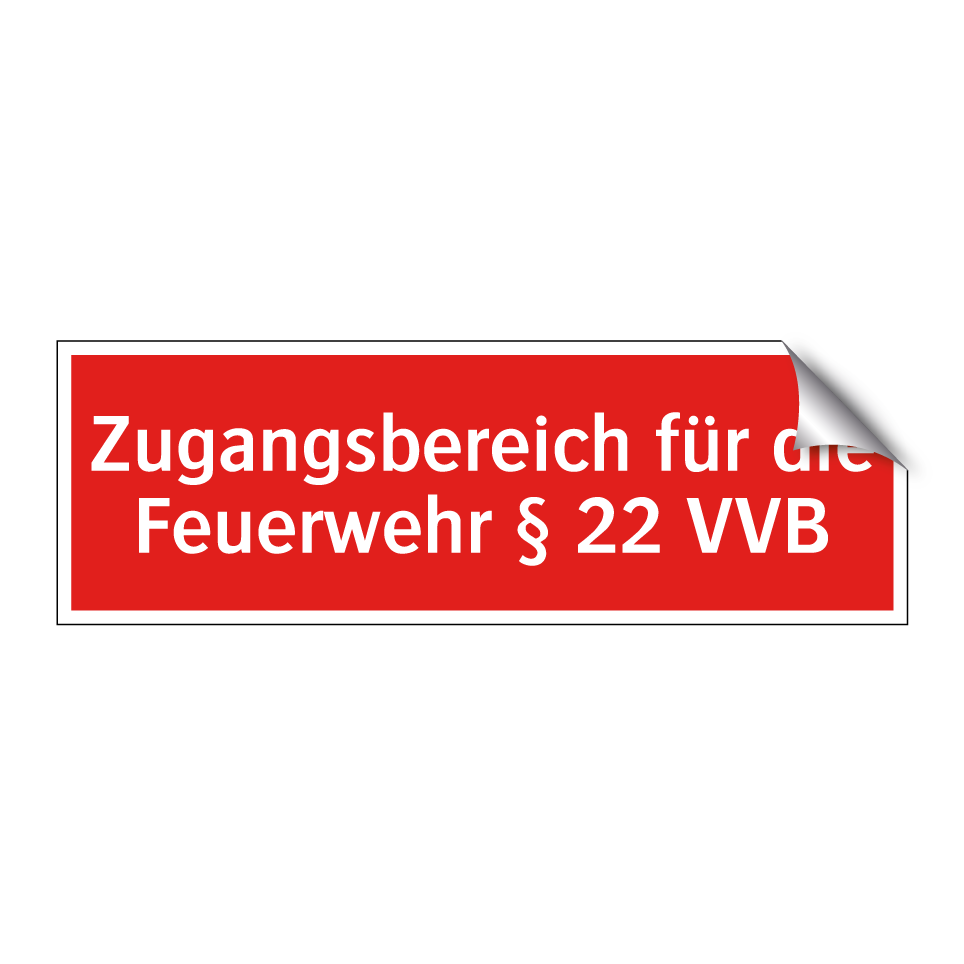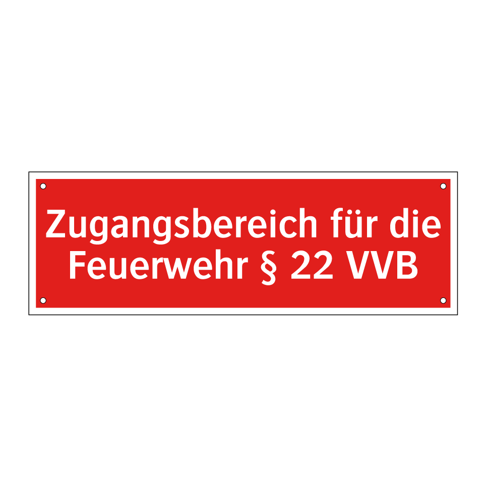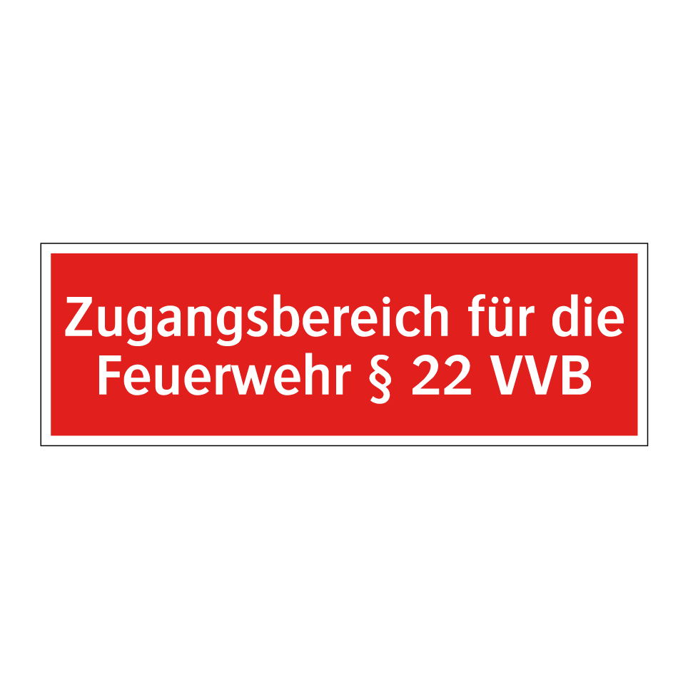 Brandschutzschild mit dem Text Zugangsbereich für die Feuerwehr § 22 VVB