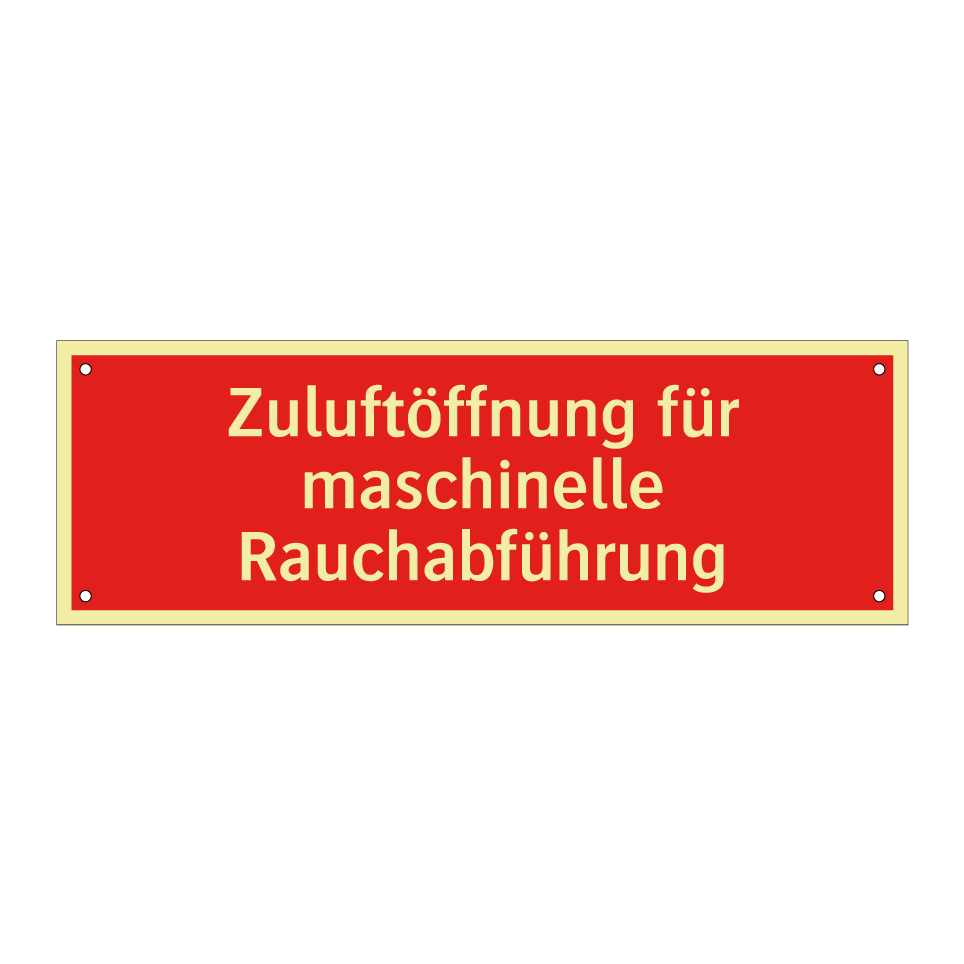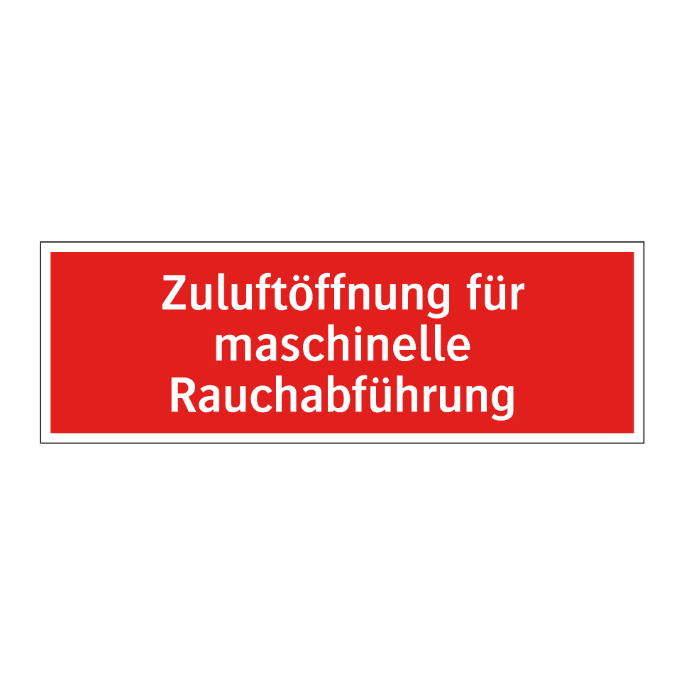Brandschutzschild mit dem Text Zuluftöffnung für maschinelle Rauchabführung