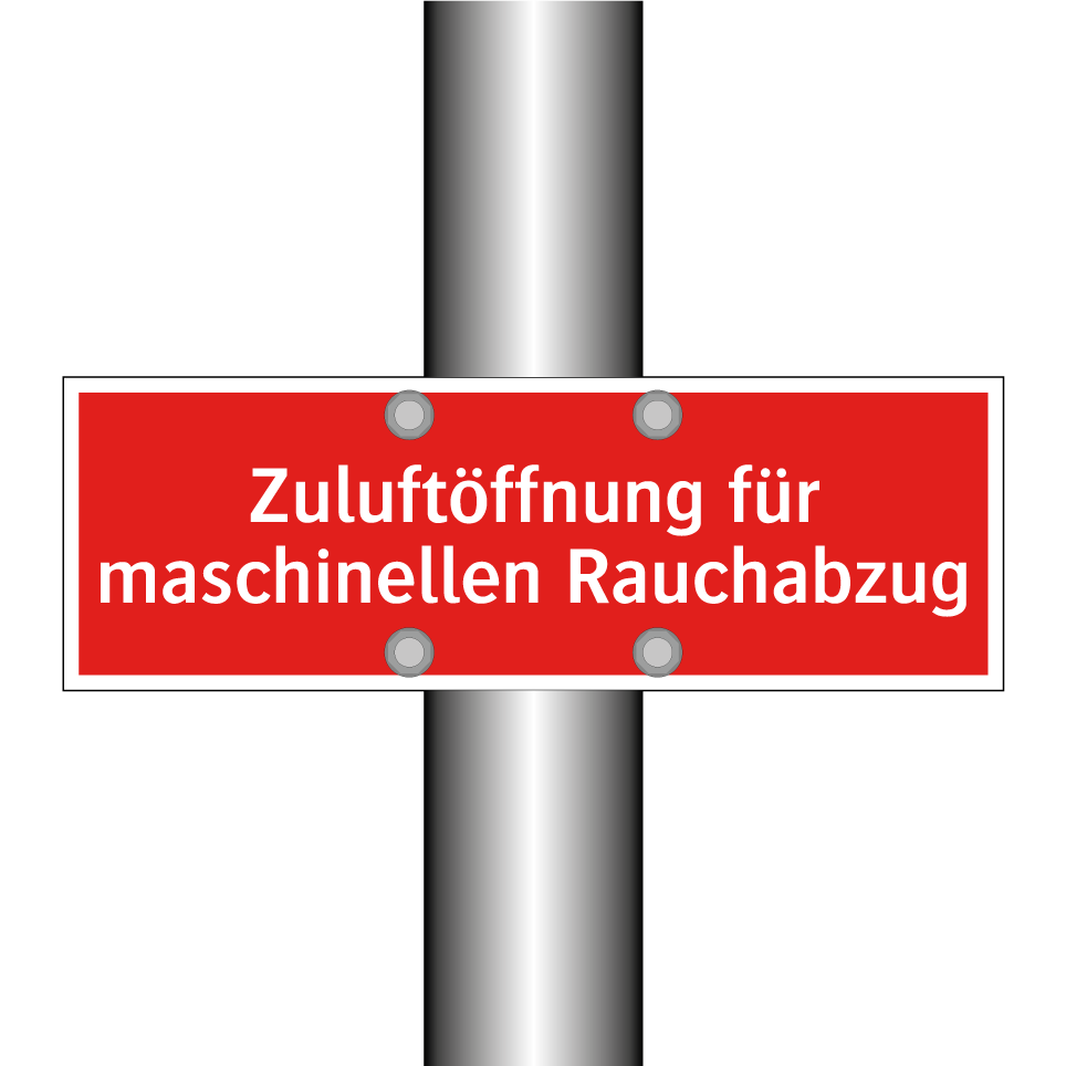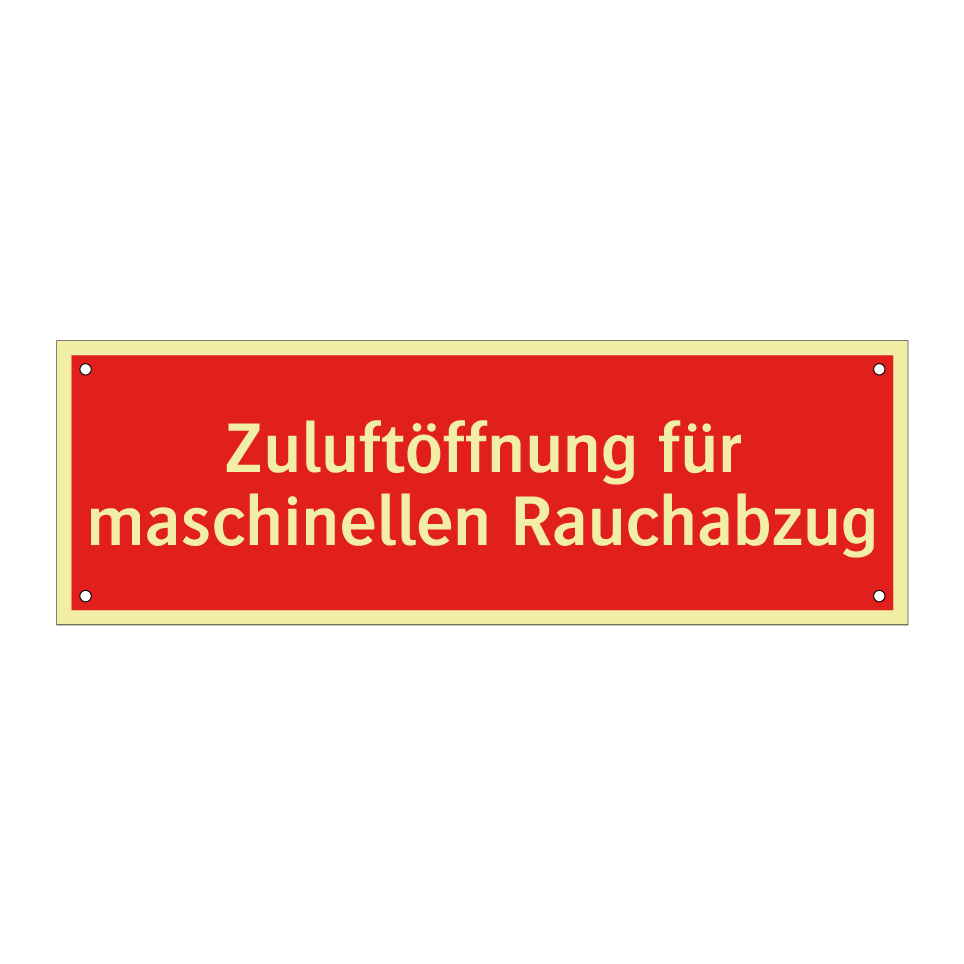 Brandschutzschild mit dem Text Zuluftöffnung für maschinellen Rauchabzug