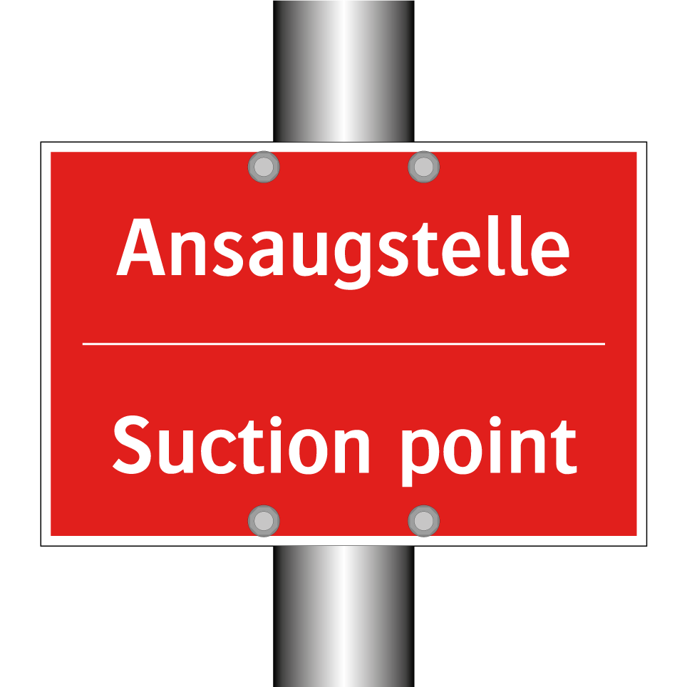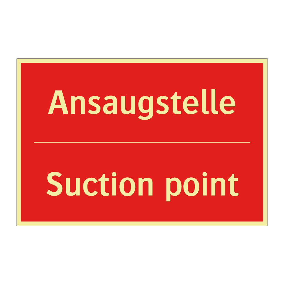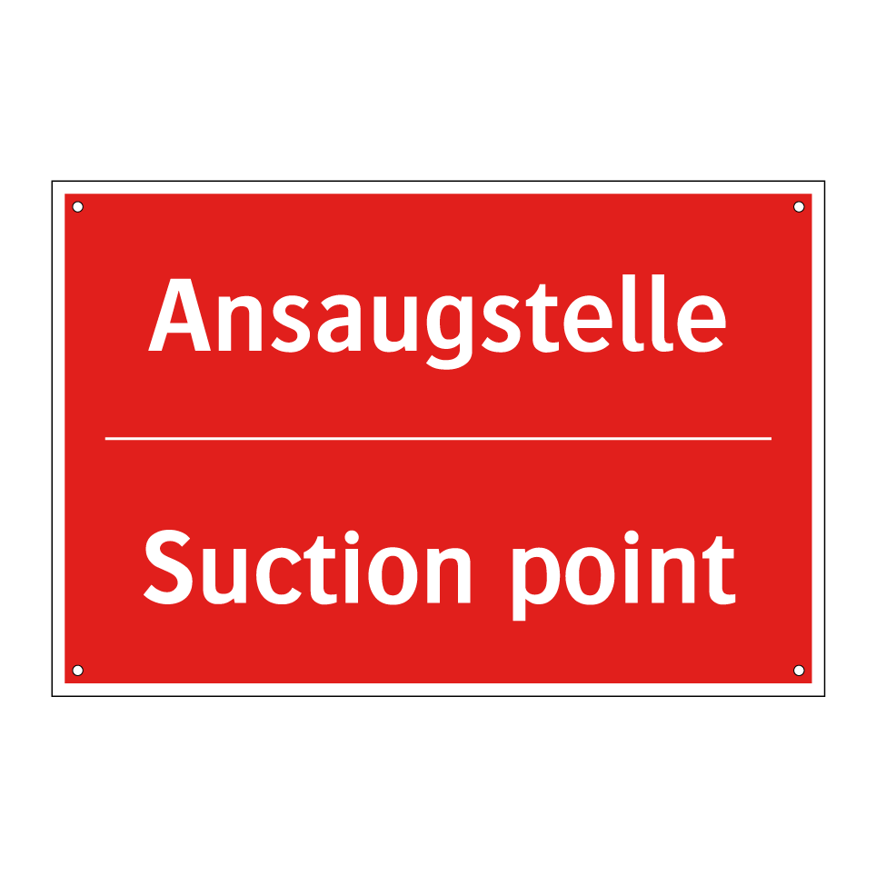 Zweisprachiges Brandschutzschild mit deutschem Text Ansaugstelle und englischem Text Suction point