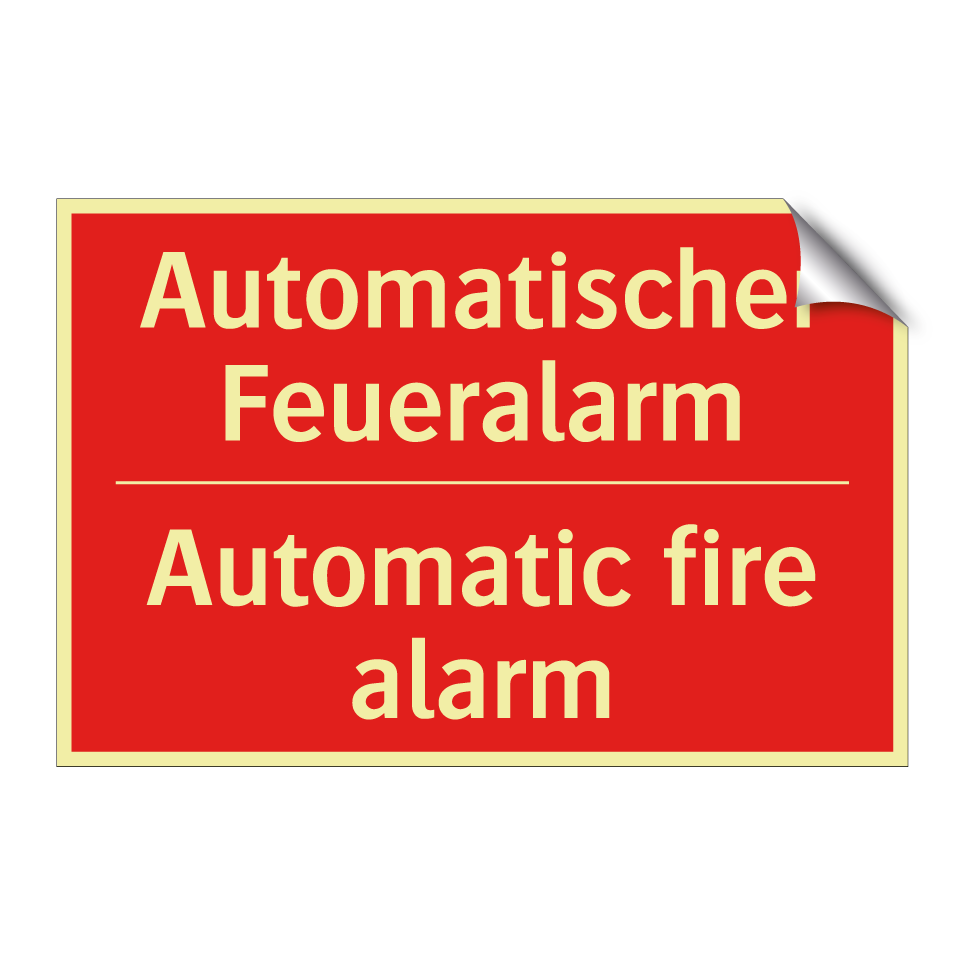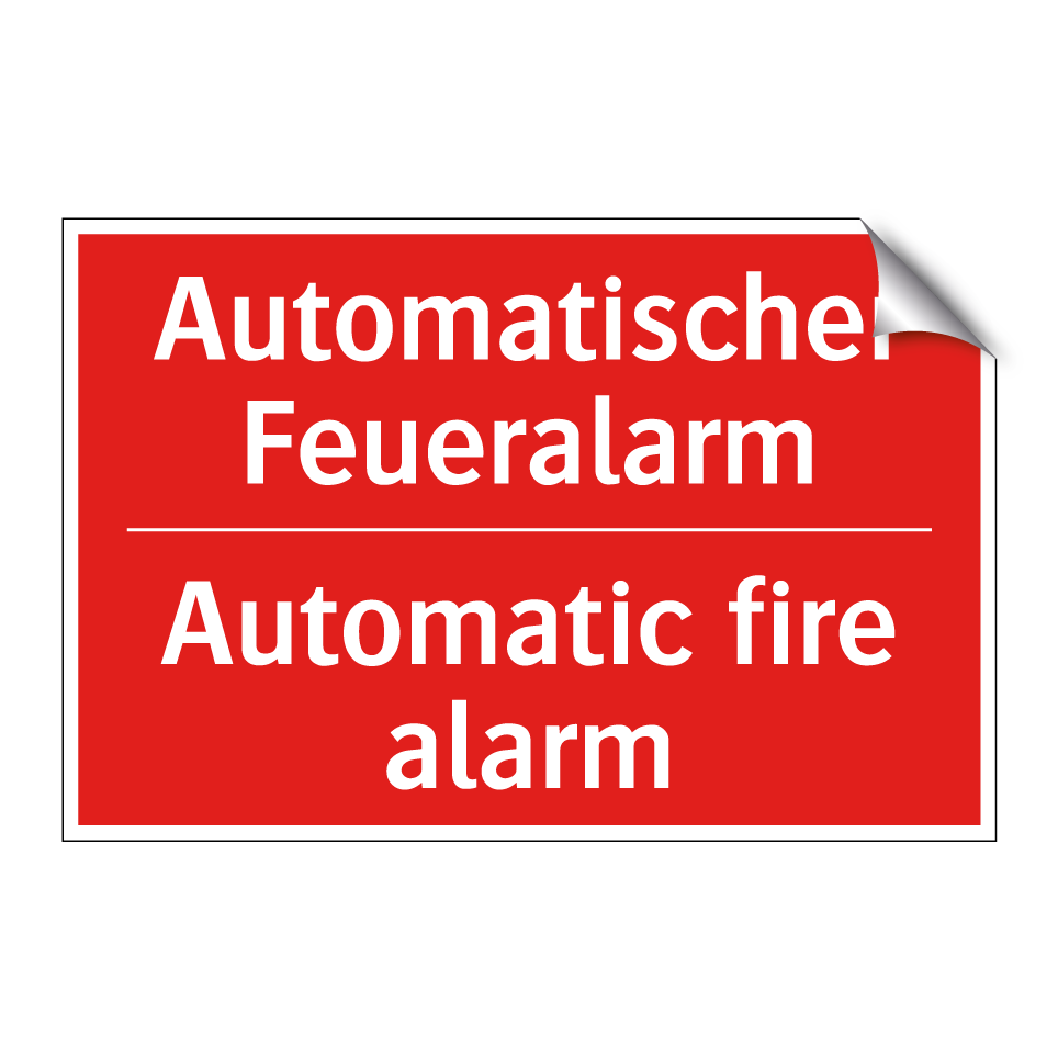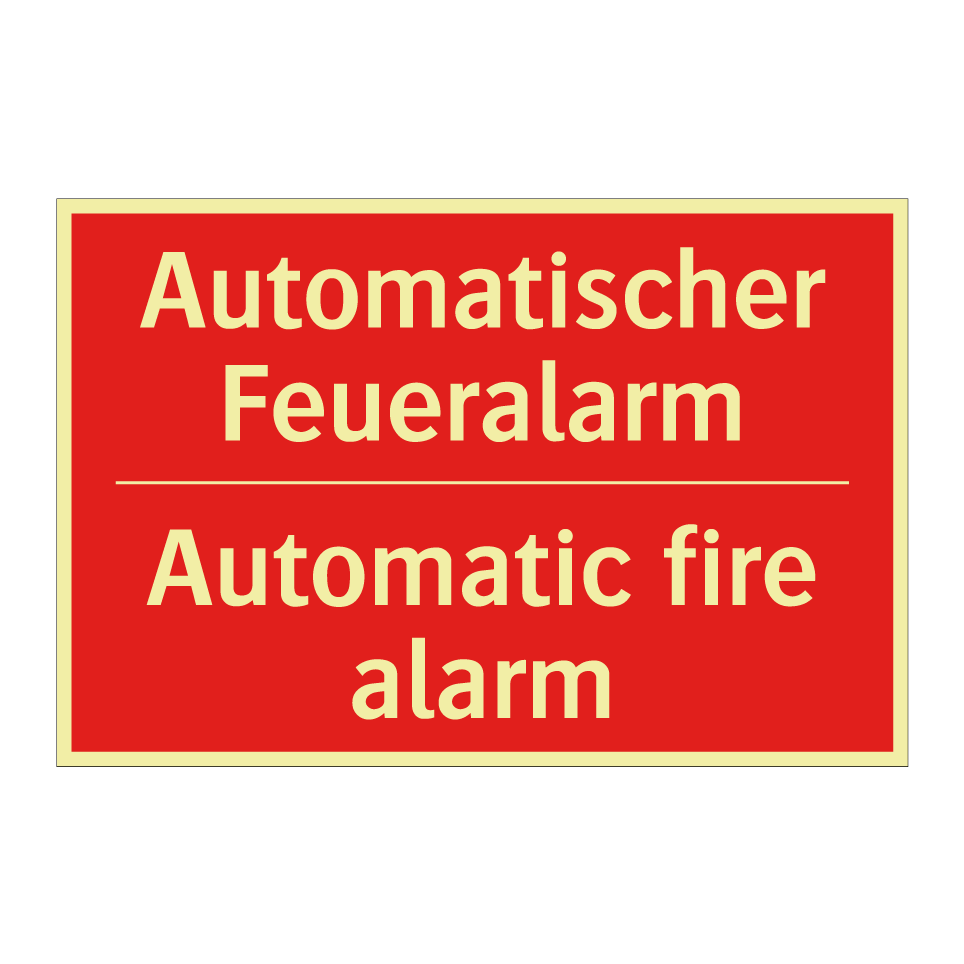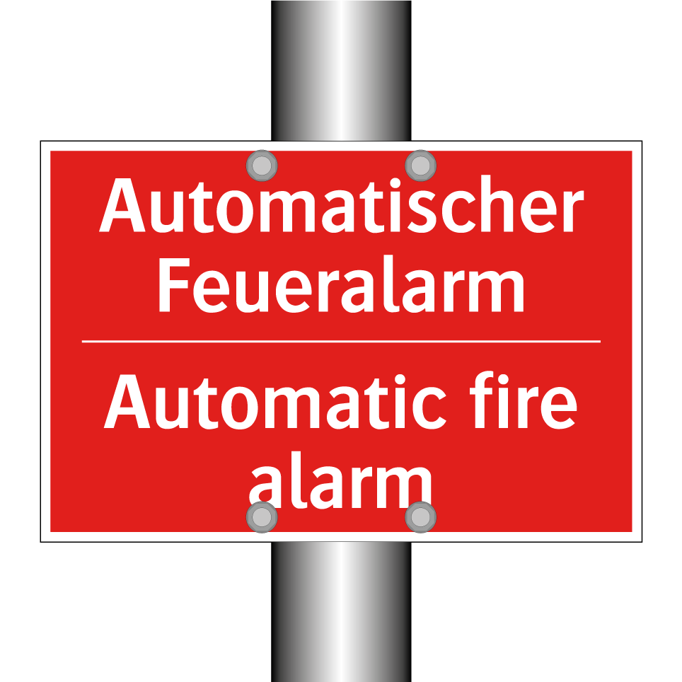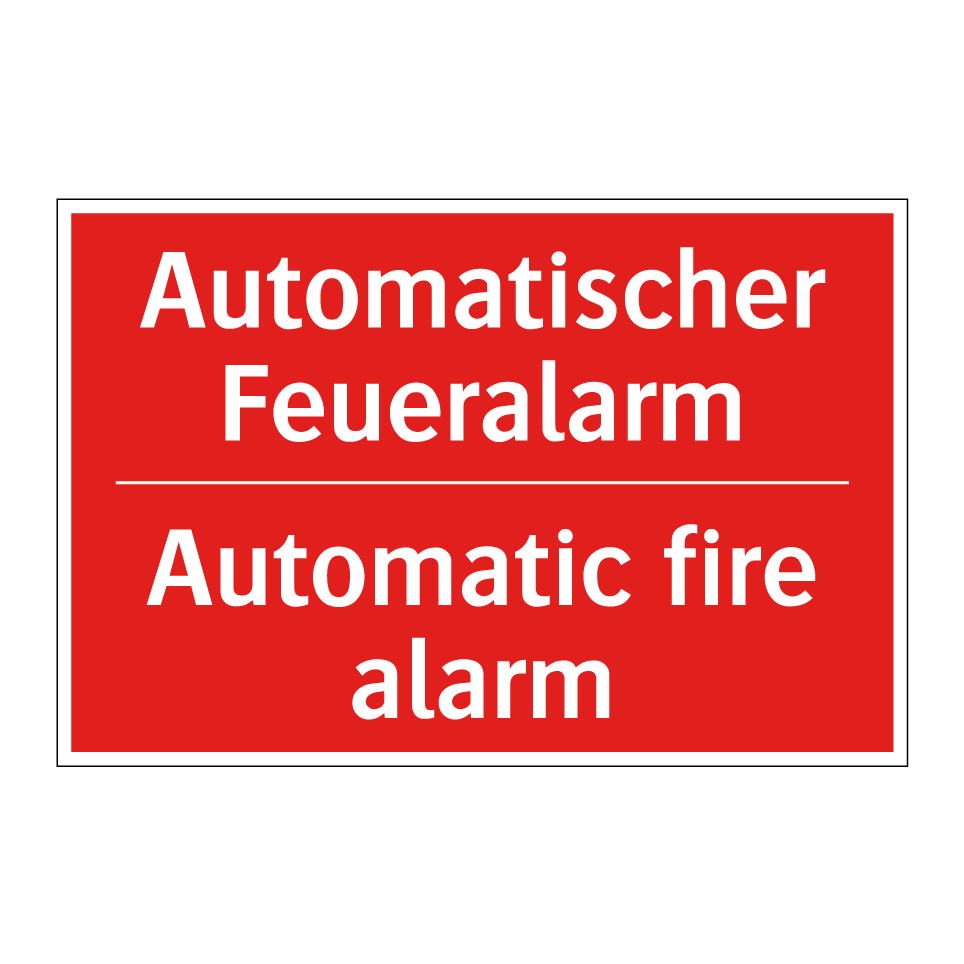 Zweisprachiges Brandschutzschild mit deutschem Text Automatischer Feueralarm und englischem Text Automatic fire alarm