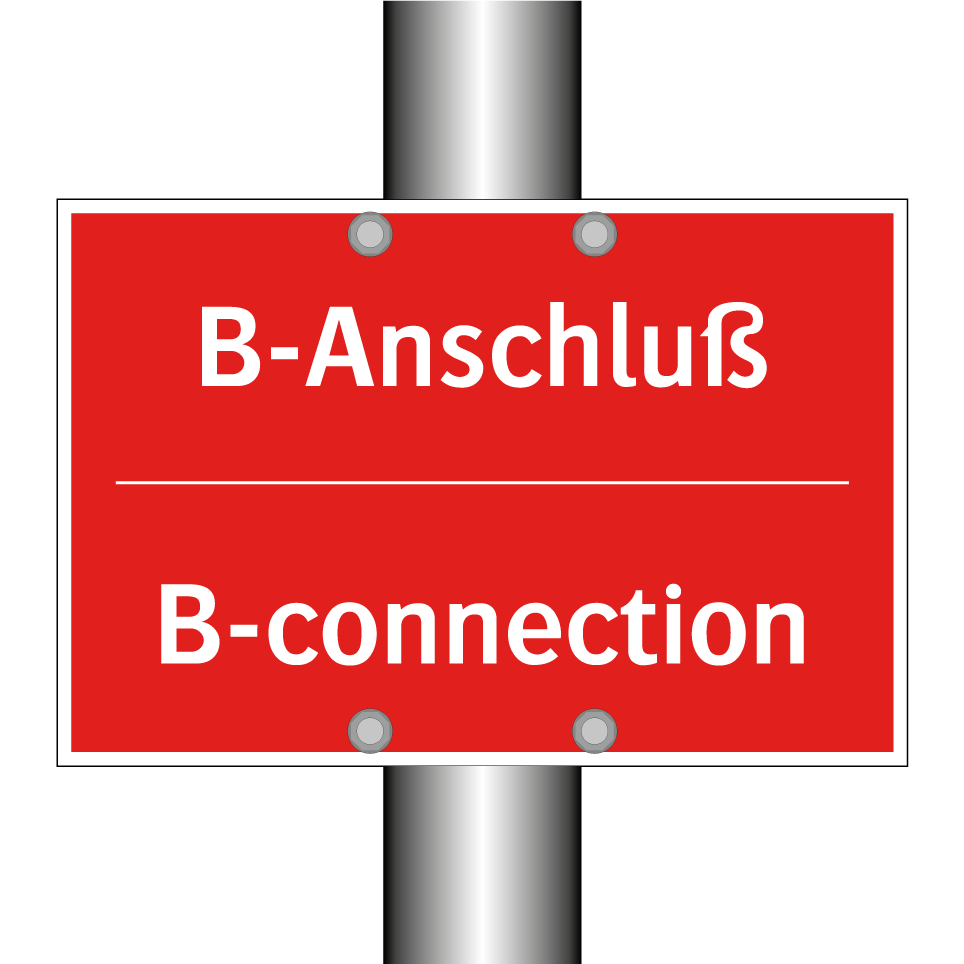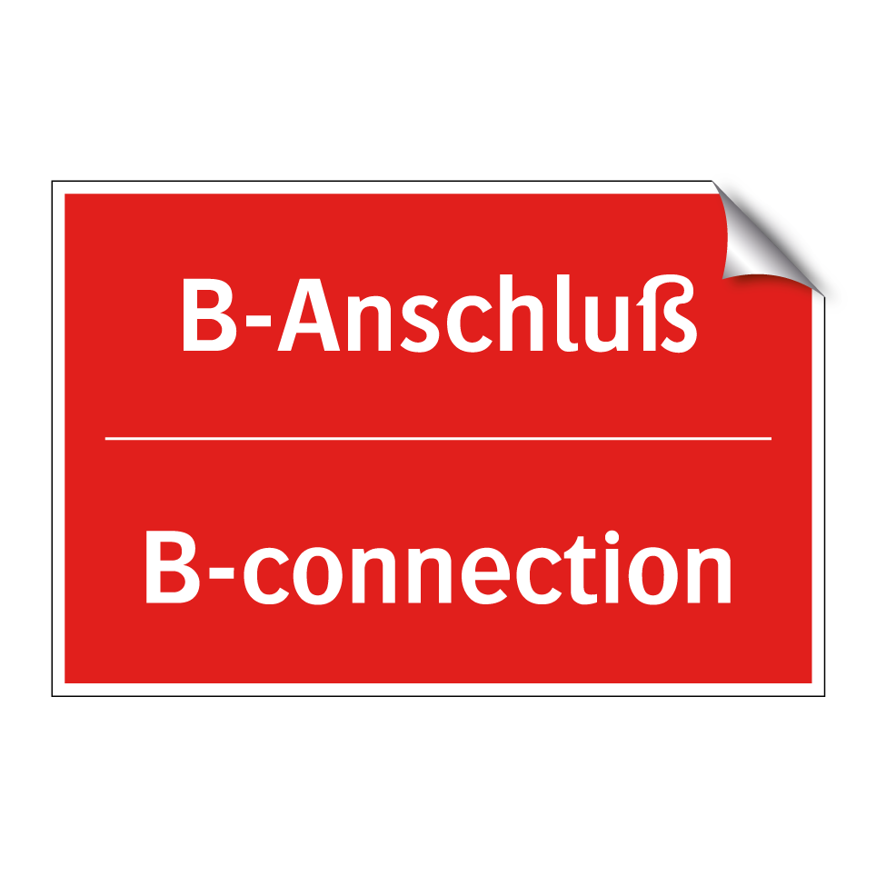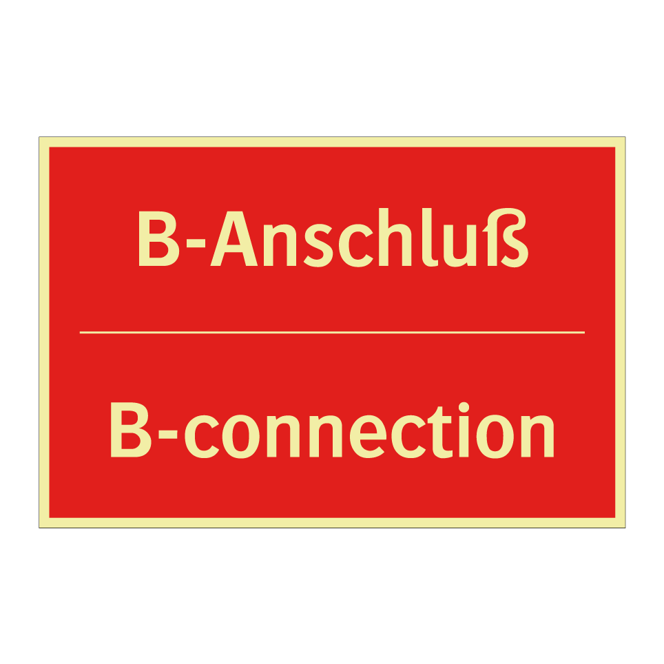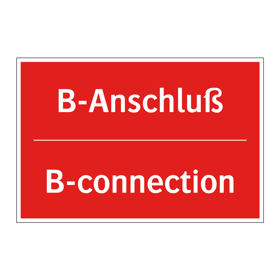Zweisprachiges Brandschutzschild mit deutschem Text B-Anschluß und englischem Text B-connection