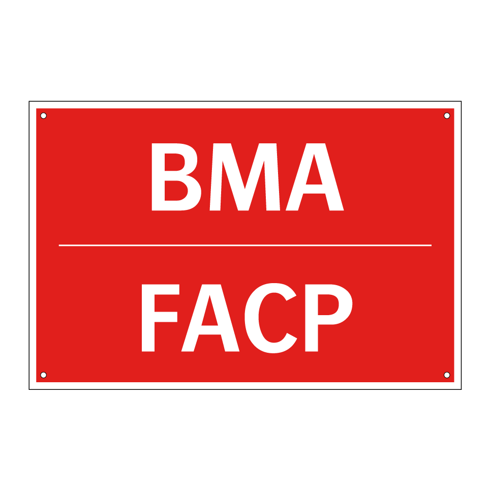 Zweisprachiges Brandschutzschild mit deutschem Text BMA und englischem Text FACP