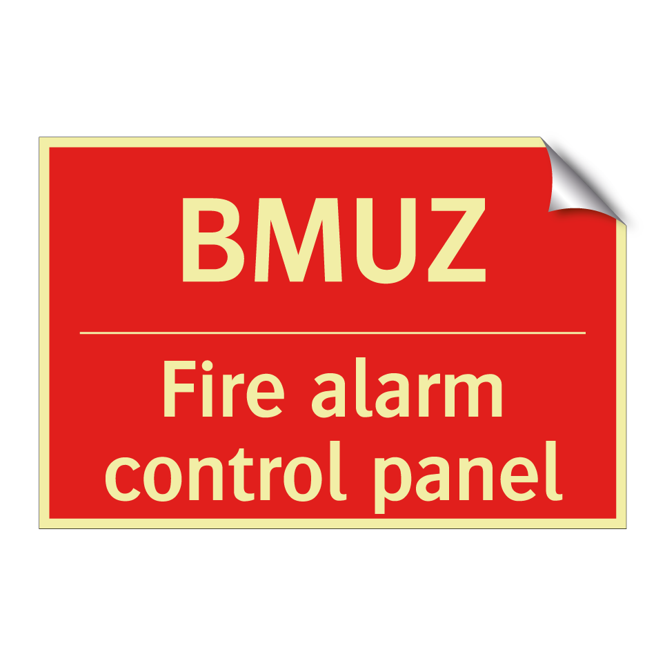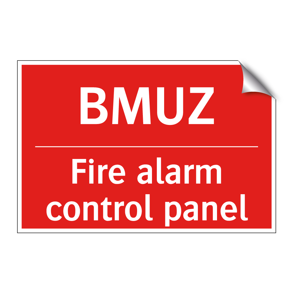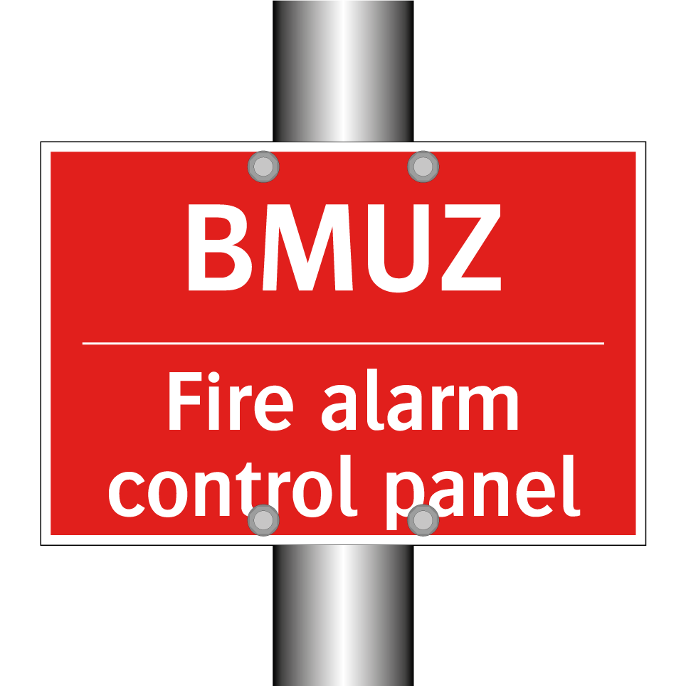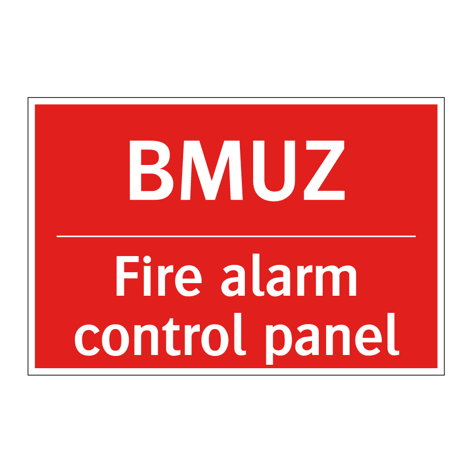 Zweisprachiges Brandschutzschild mit deutschem Text BMUZ und englischem Text Fire alarm control panel