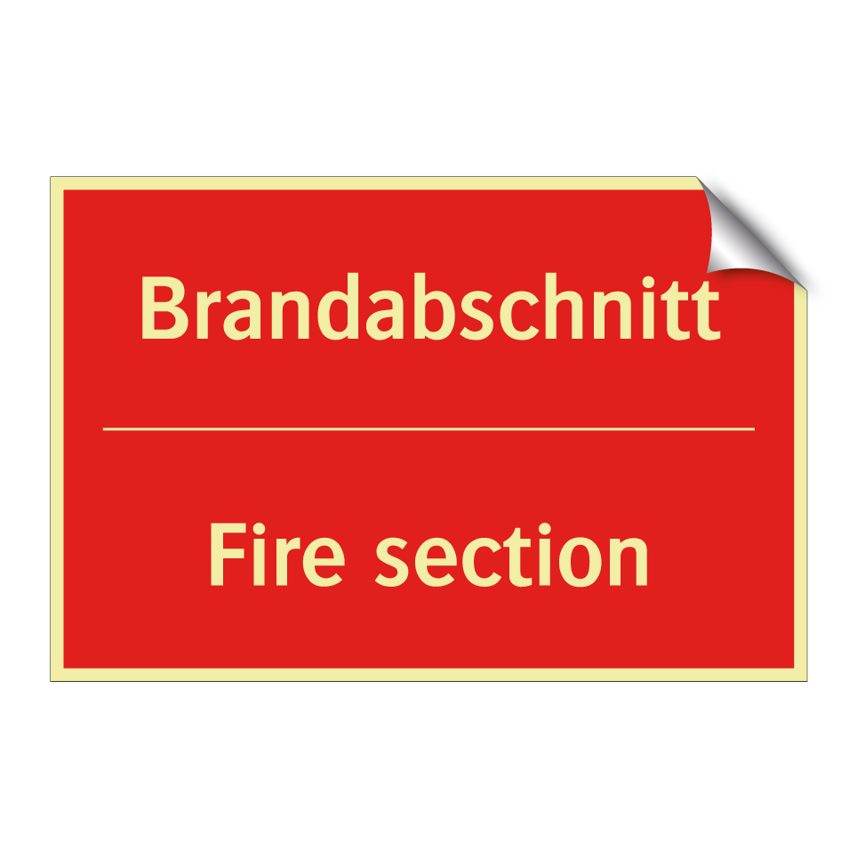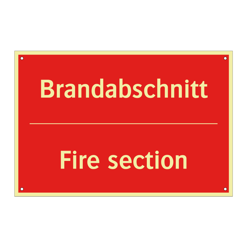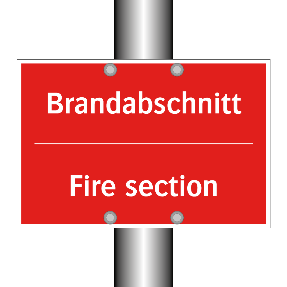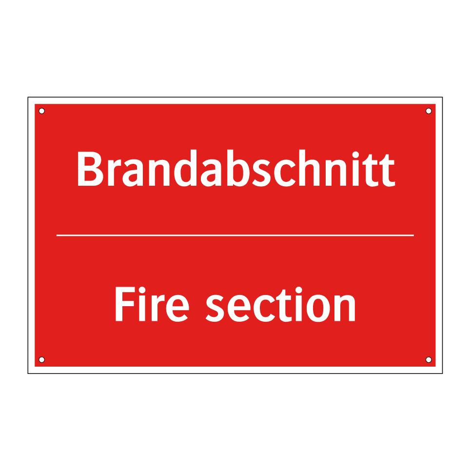 Zweisprachiges Brandschutzschild mit deutschem Text Brandabschnitt und englischem Text Fire section