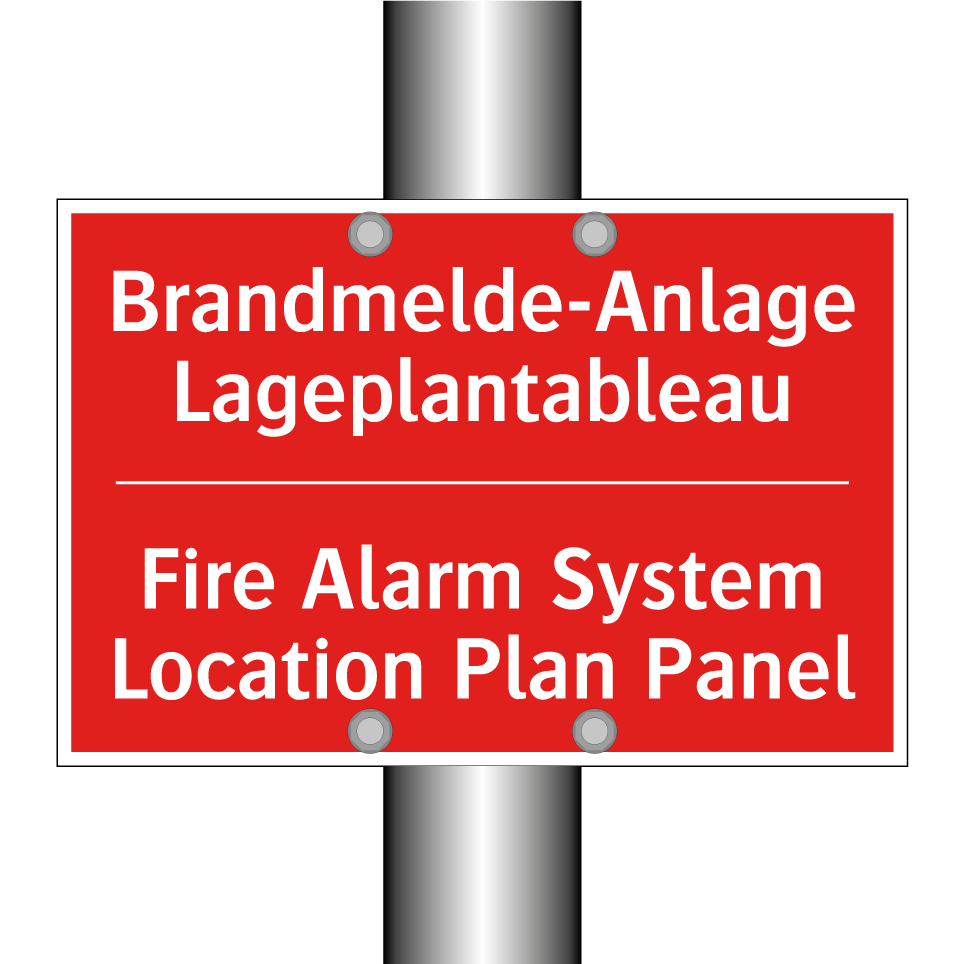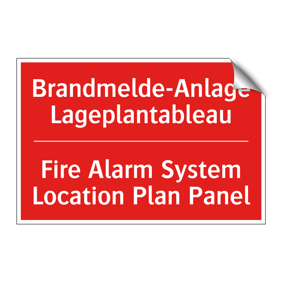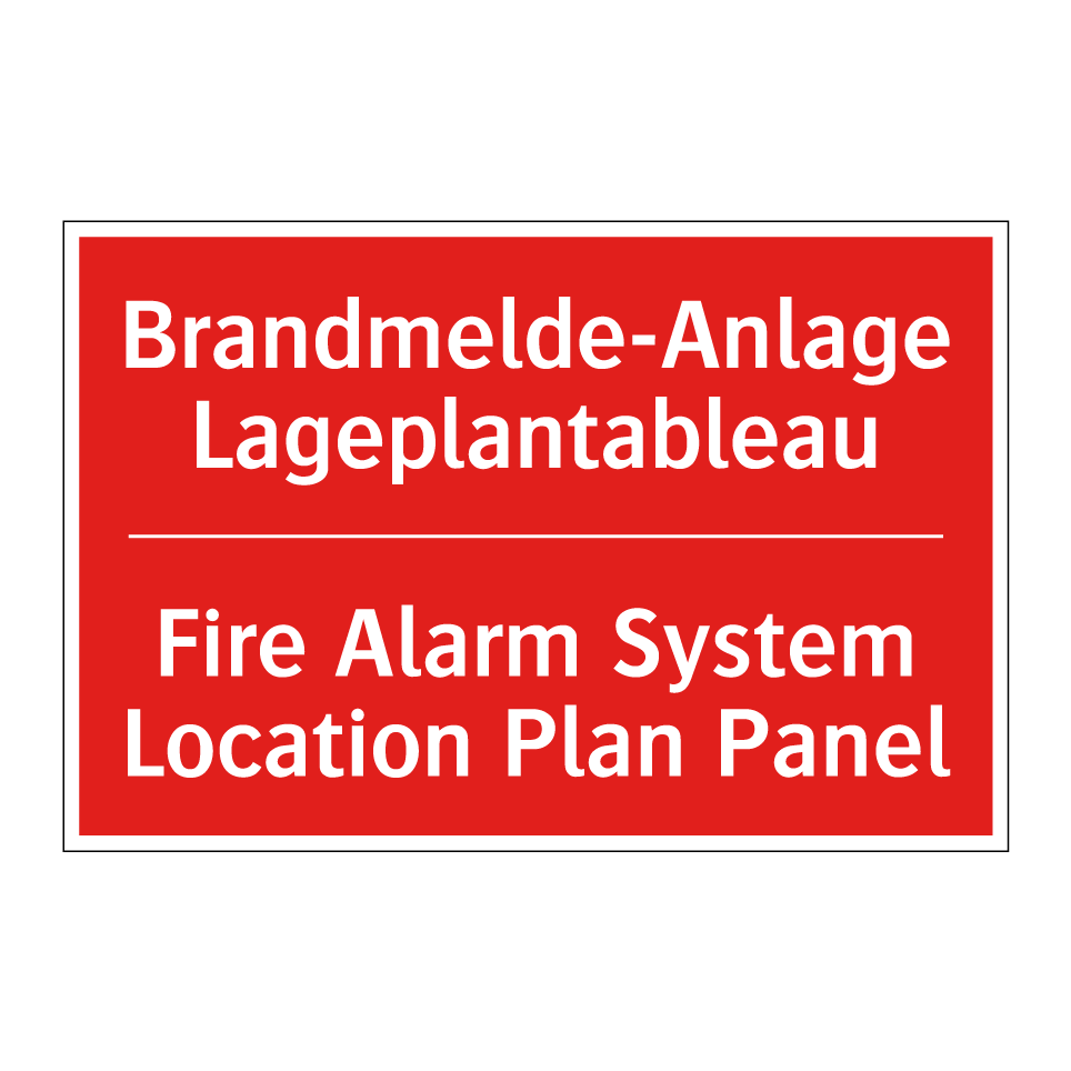 Zweisprachiges Brandschutzschild mit deutschem Text Brandmelde-Anlage Lageplantableau und englischem Text Fire Alarm System Location Plan Panel
