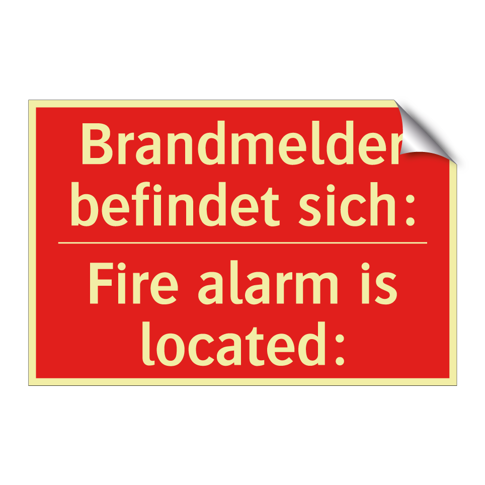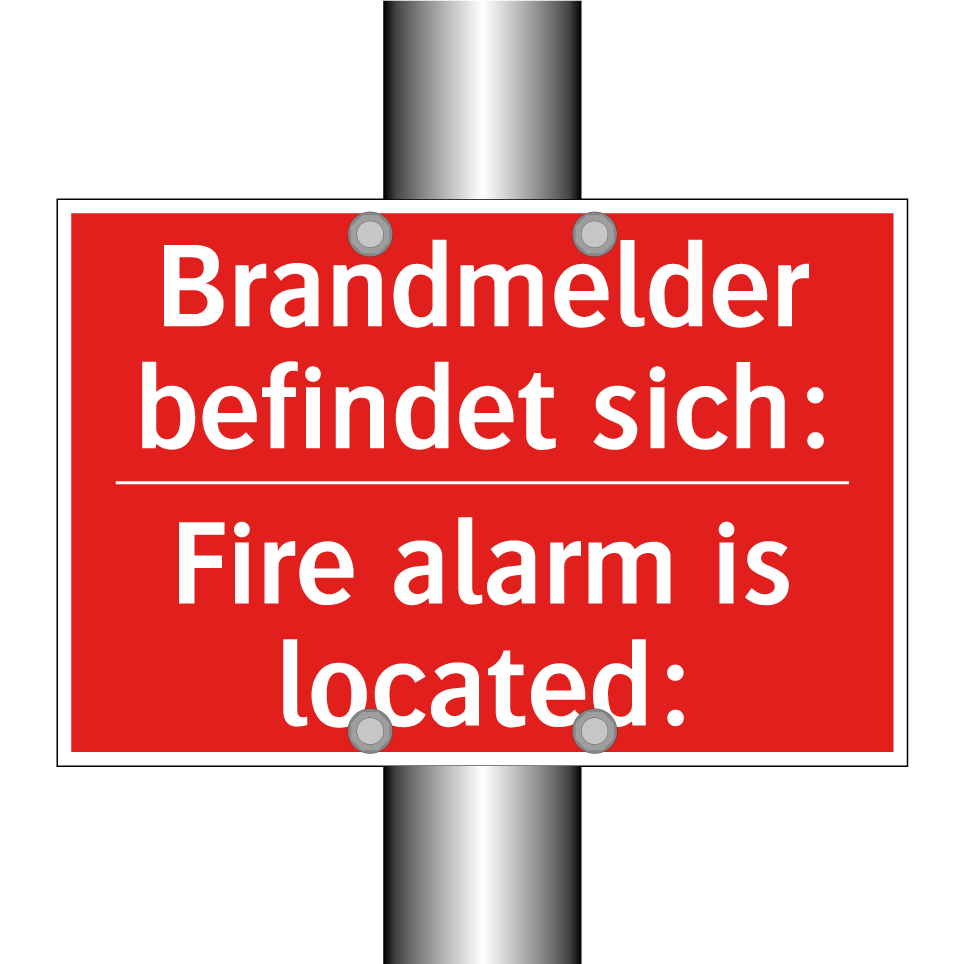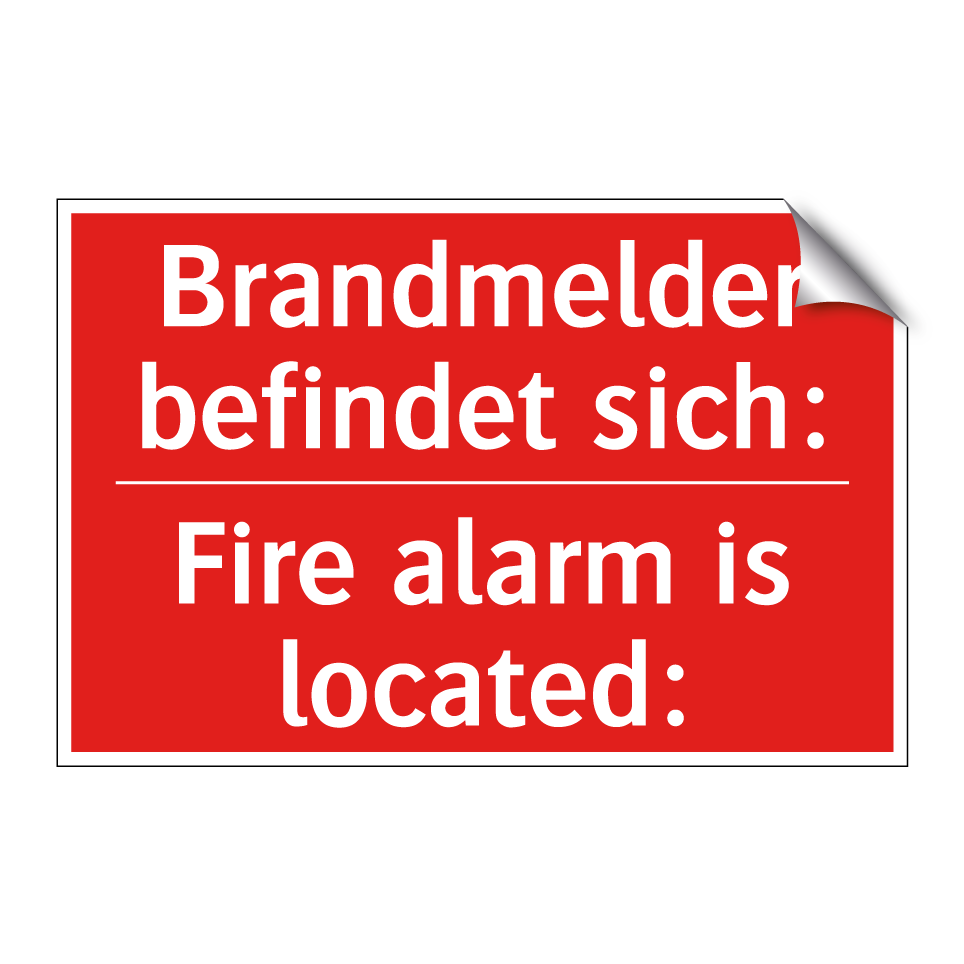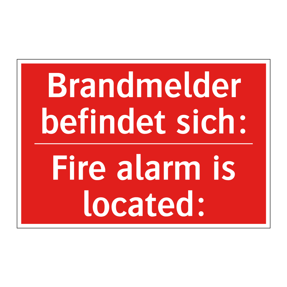 Zweisprachiges Brandschutzschild mit deutschem Text Brandmelder befindet sich: und englischem Text Fire alarm is located: