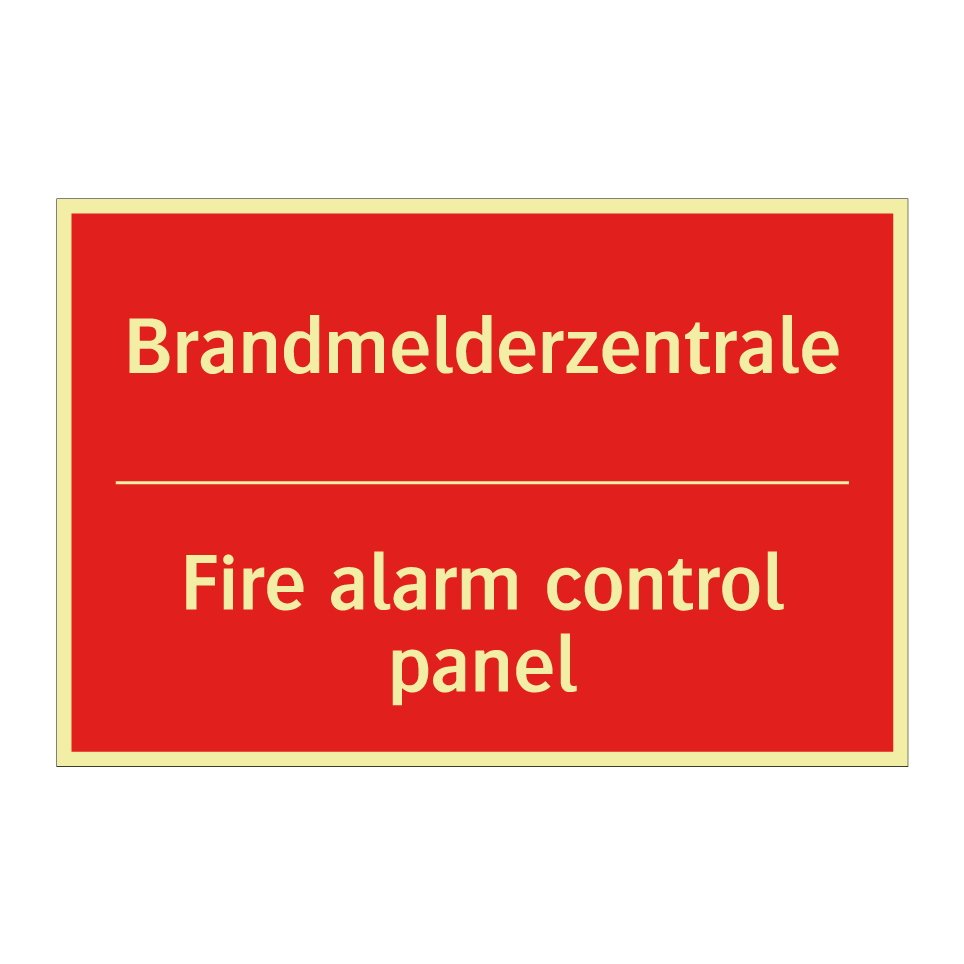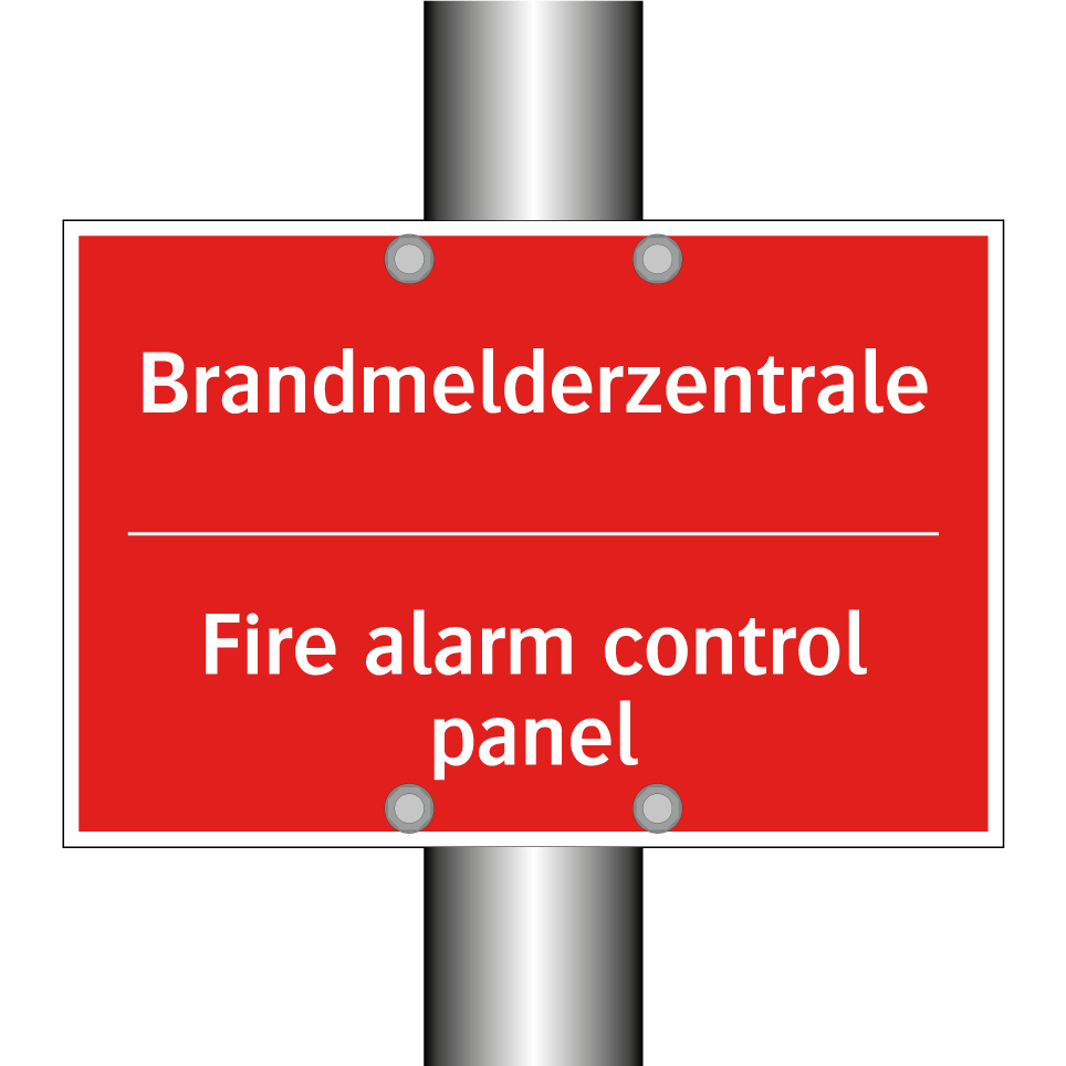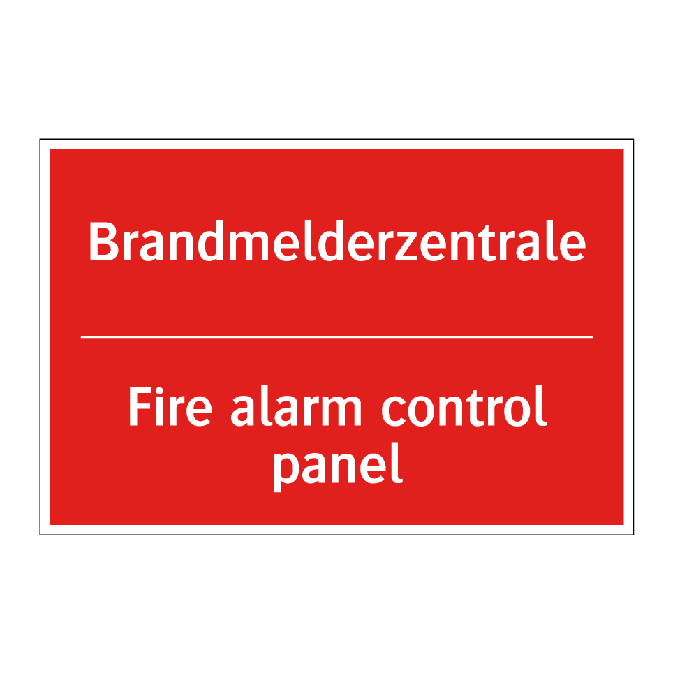 Zweisprachiges Brandschutzschild mit deutschem Text Brandmelderzentrale und englischem Text Fire alarm control panel