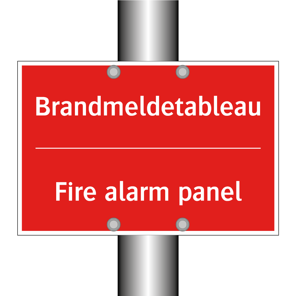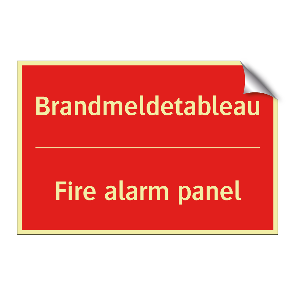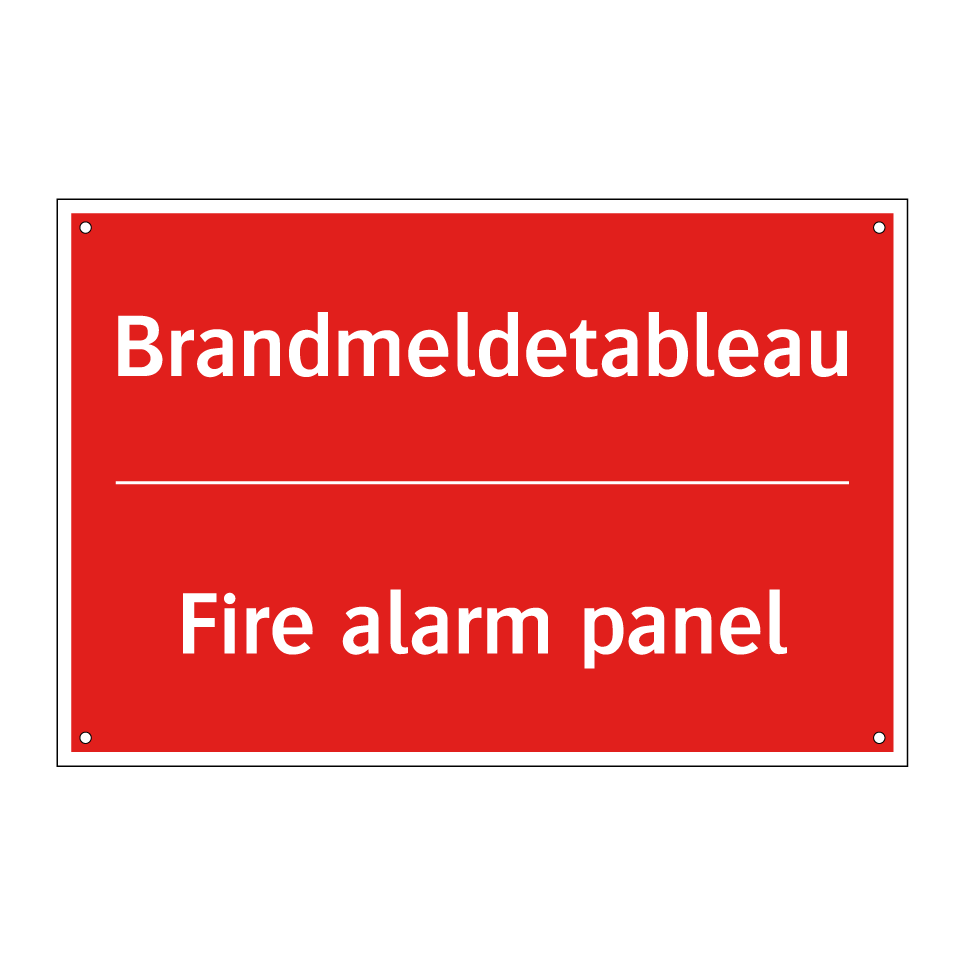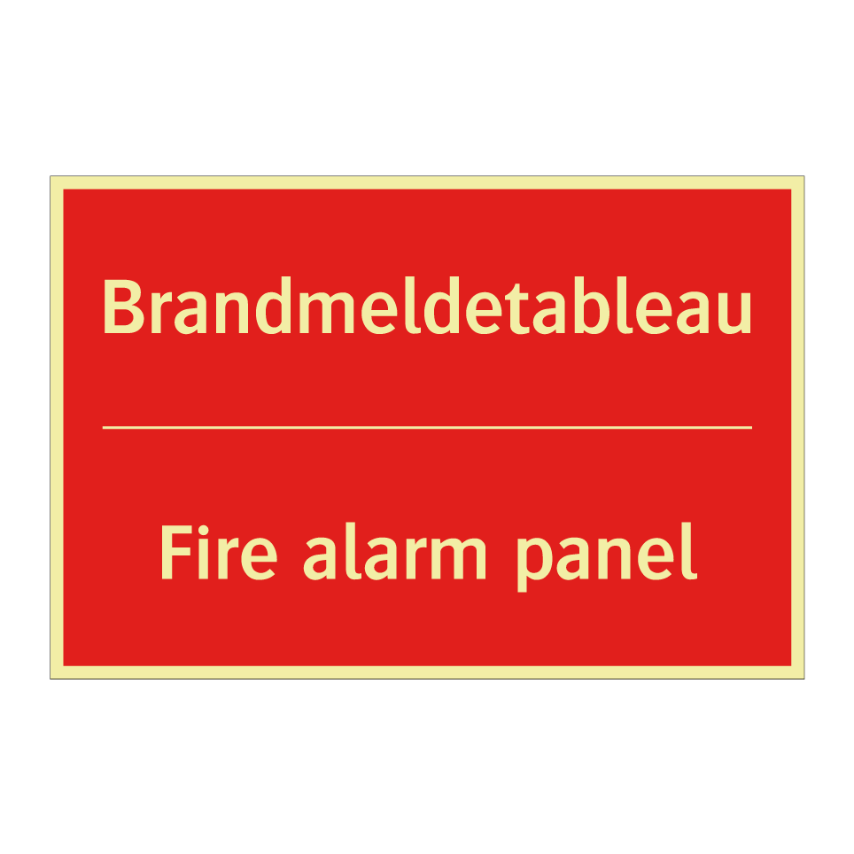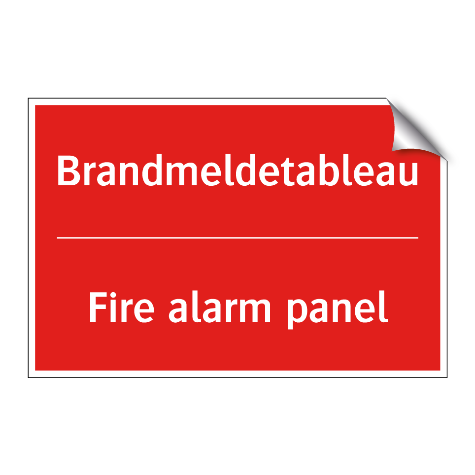 Zweisprachiges Brandschutzschild mit deutschem Text Brandmeldetableau und englischem Text Fire alarm panel