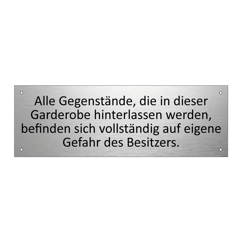 Alle Gegenstände, die in dieser Garderobe hinterlassen werden, befinden sich vollständig auf eigene Gefahr des Besitzers.
