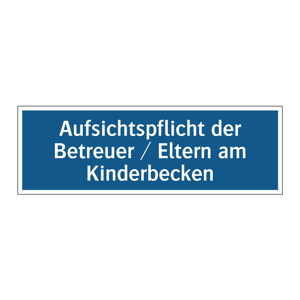 Diese Gebotsschild ist ideal für Schwimmbäder und Freizeiteinrichtungen, wo Kinderbecken vorhanden sind. Sie erinnert Eltern und Betreuer daran, ihre Aufsichtspflicht ernst zu nehmen und stets ein wachsames Auge auf die Kinder zu haben. Die klare blaue Hintergrundfarbe mit weißer Schrift sorgt dafür, dass die Botschaft sofort ins Auge fällt und leicht verständlich ist. Platzieren Sie dieses Schild in der Nähe von Kinderbecken, um die Sicherheit der kleinen Badegäste zu gewährleisten und die Verantwortlichen an ihre wichtige Rolle zu erinnern. Ein unverzichtbares Element für jede Einrichtung, die Wert auf Sicherheit und Verantwortungsbewusstsein legt.