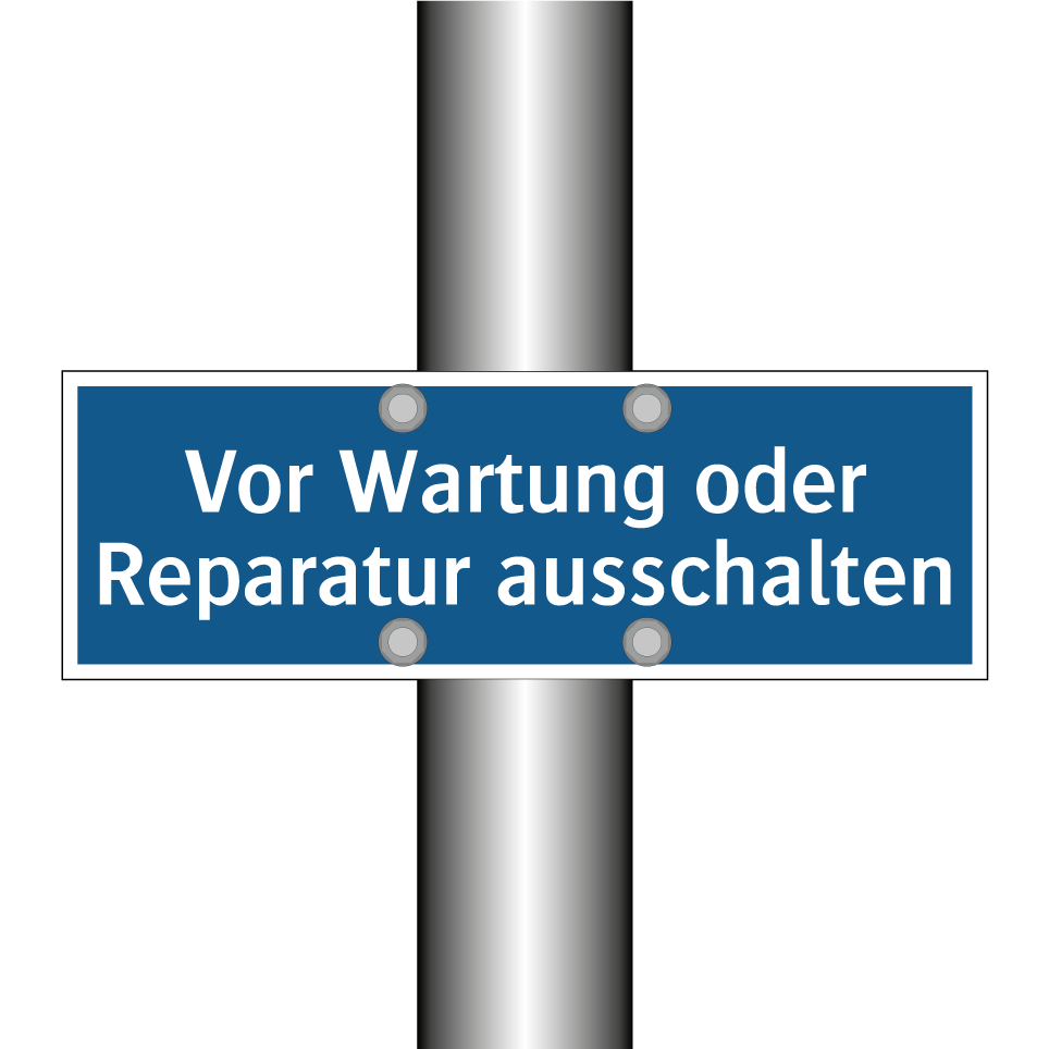 Gebotsschild mit dem Text Vor Wartung oder Reparatur ausschalten