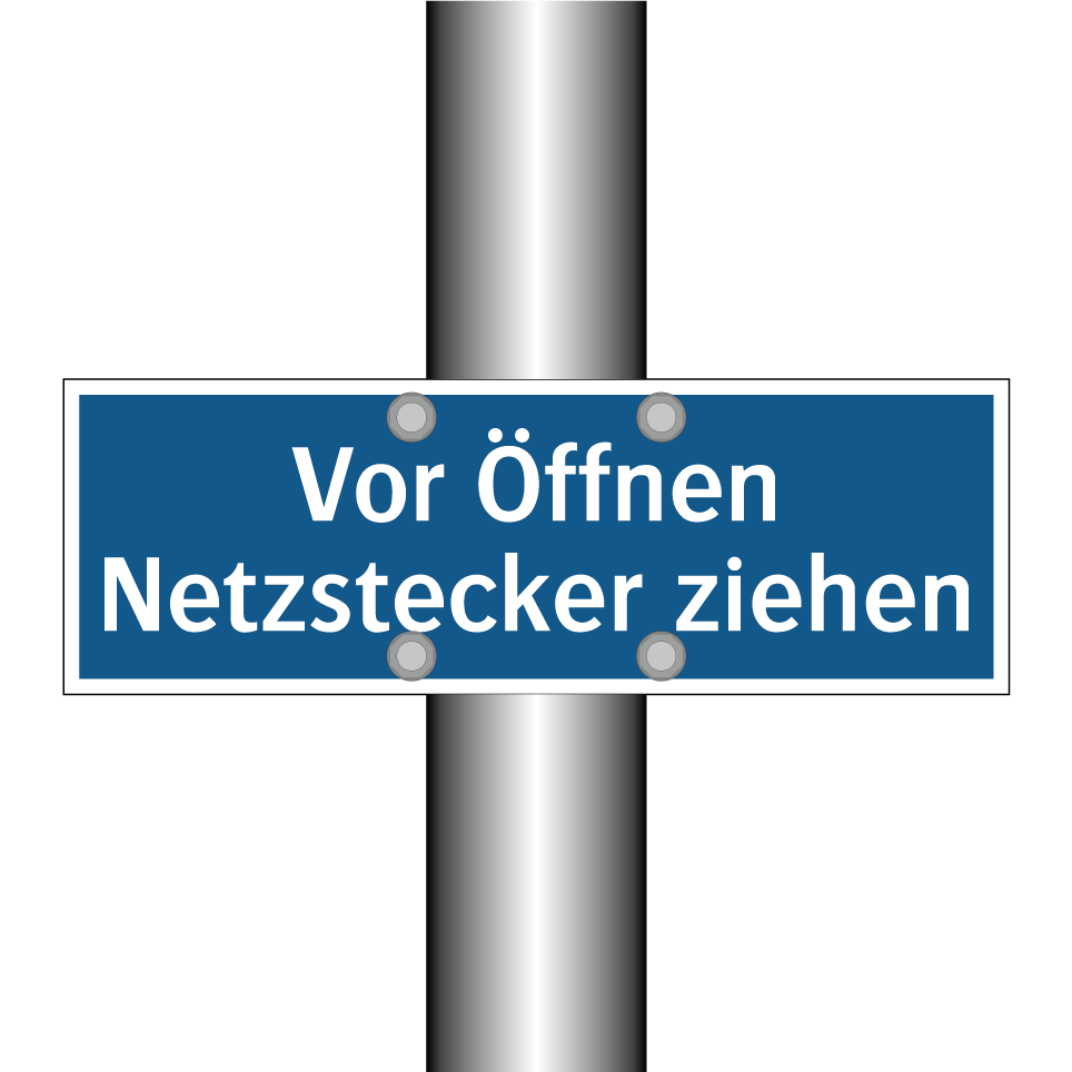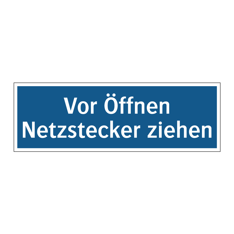 Gebotsschild mit dem Text Vor Öffnen Netzstecker ziehen