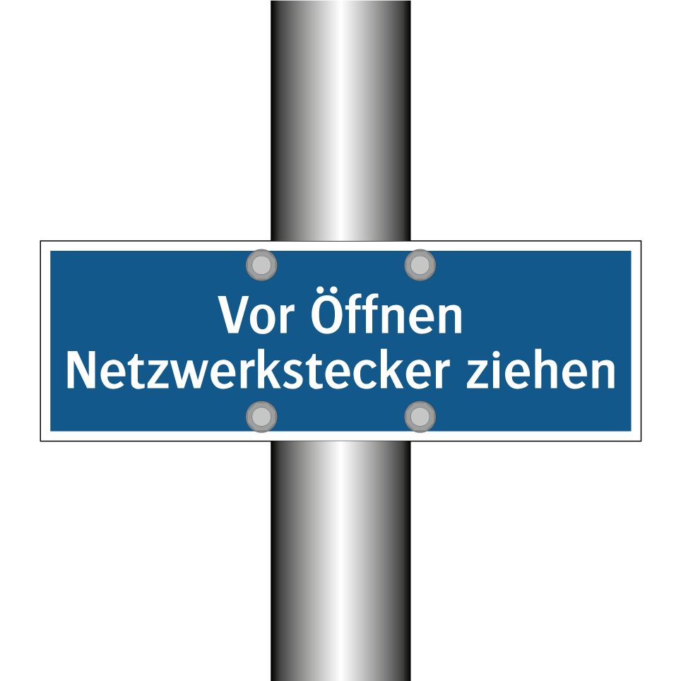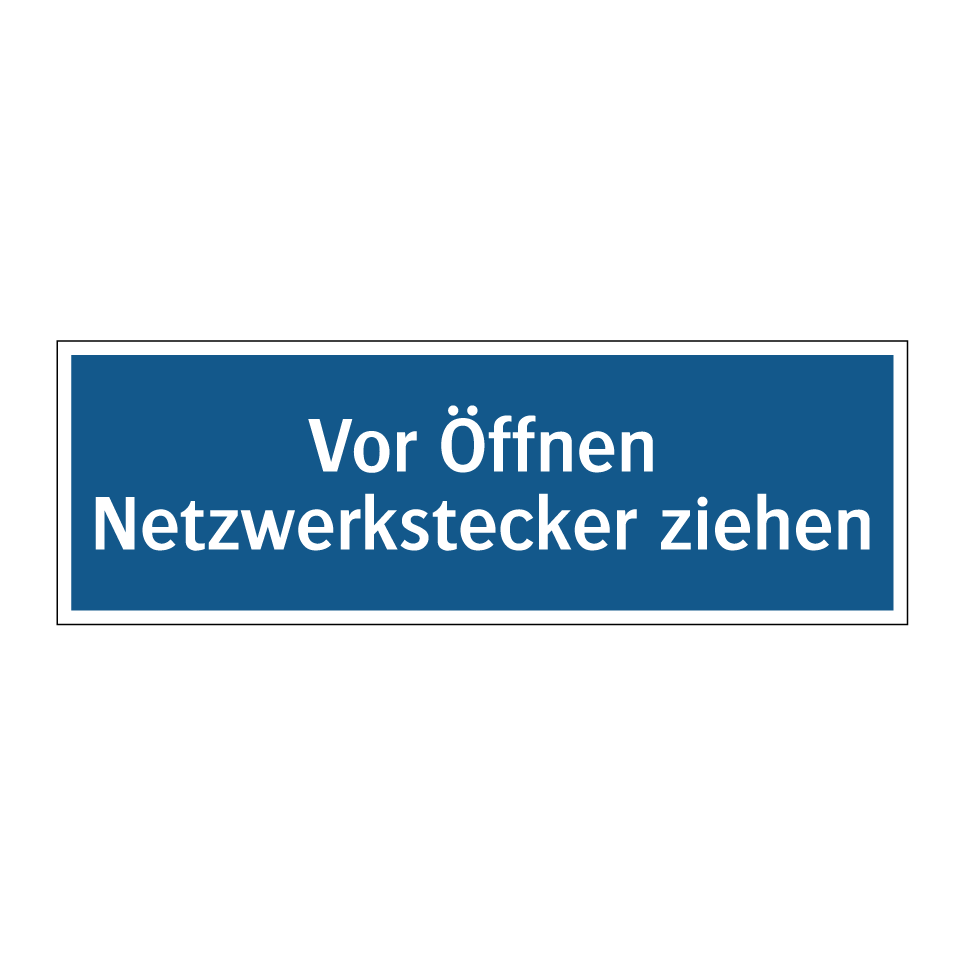 Gebotsschild mit dem Text Vor Öffnen Netzwerkstecker ziehen
