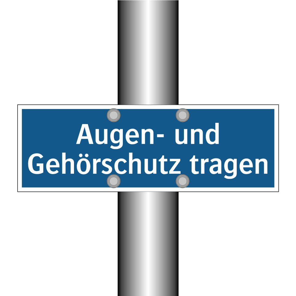Gebotsschild mit dem Text Augen- und Gehörschutz tragen