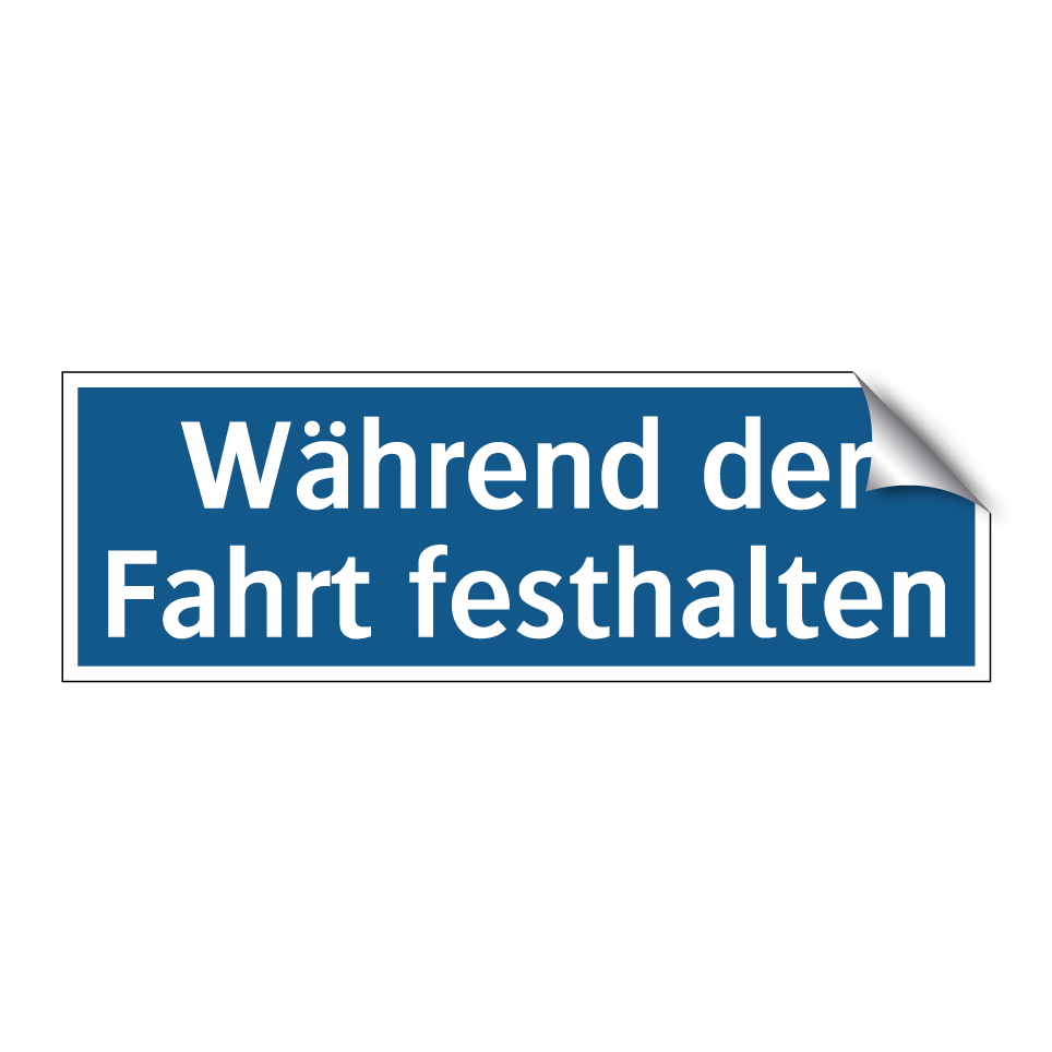 Gebotsschild mit dem Text Während der Fahrt festhalten