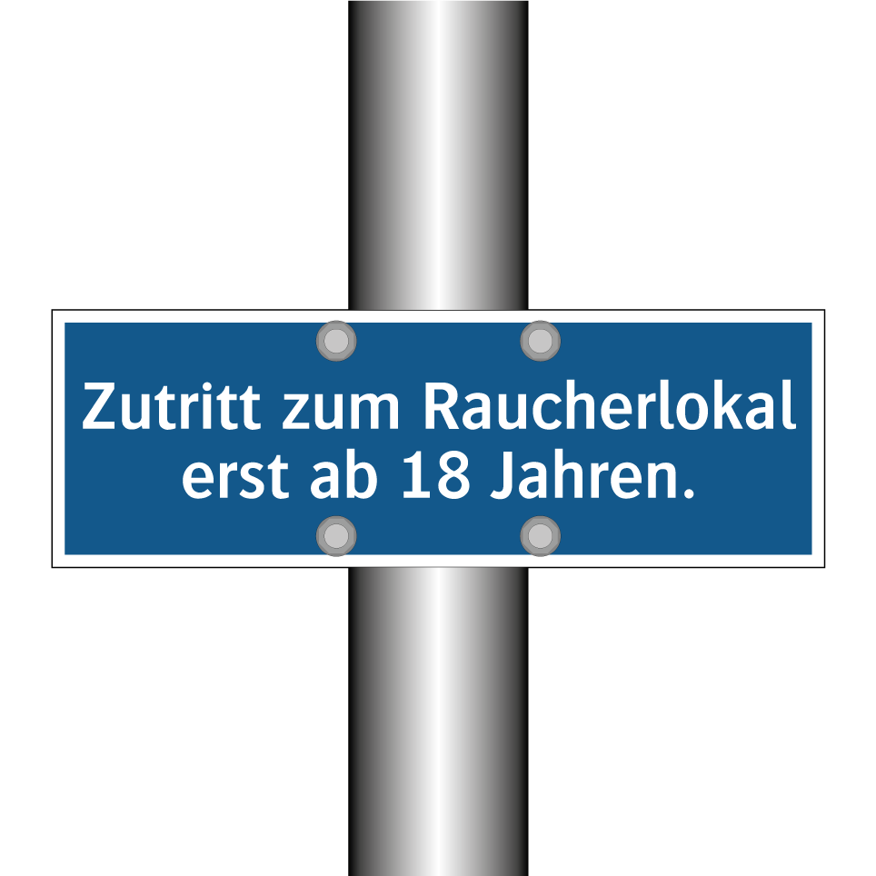 Gebotsschild mit dem Text Zutritt zum Raucherlokal erst ab 18 Jahren.