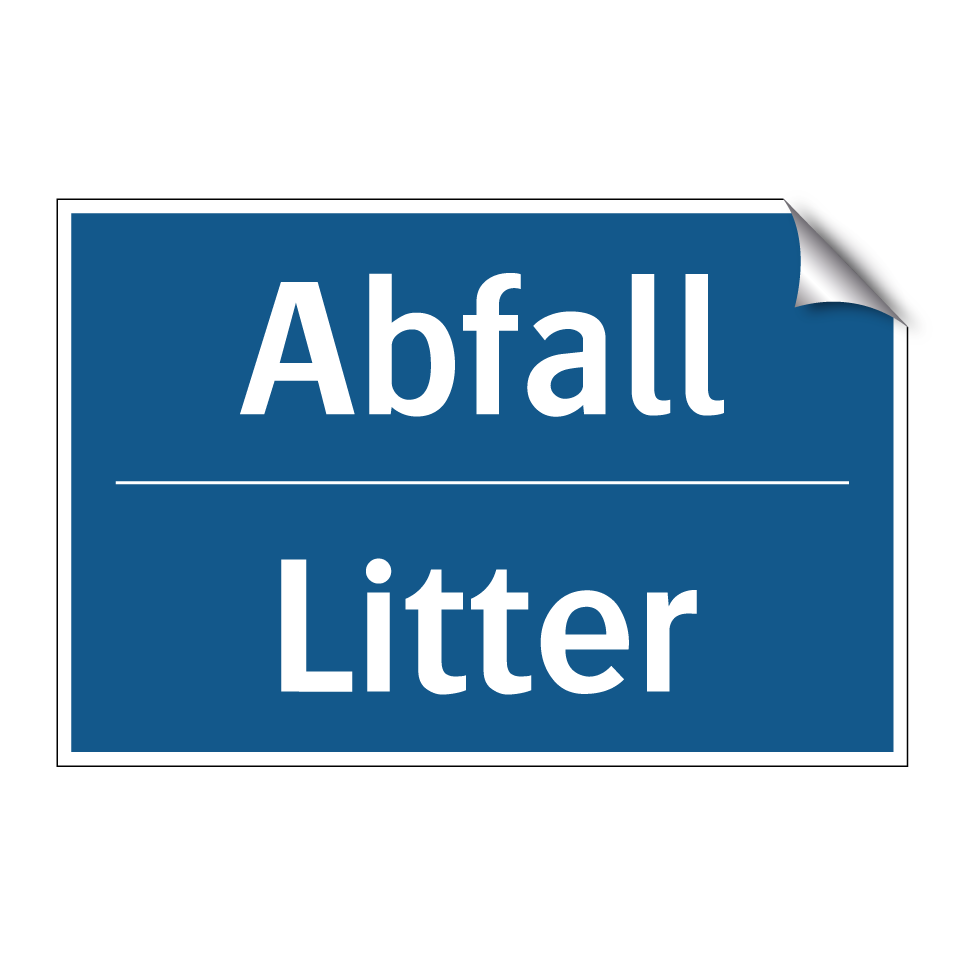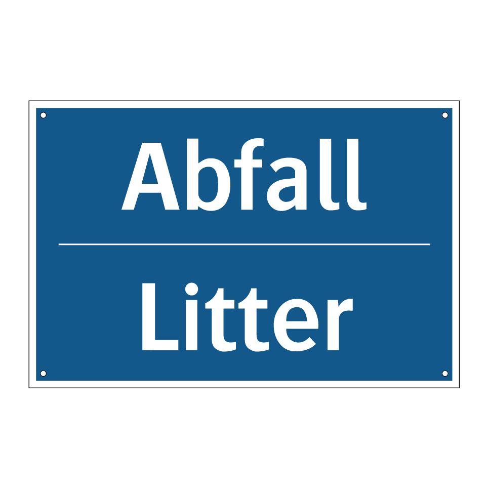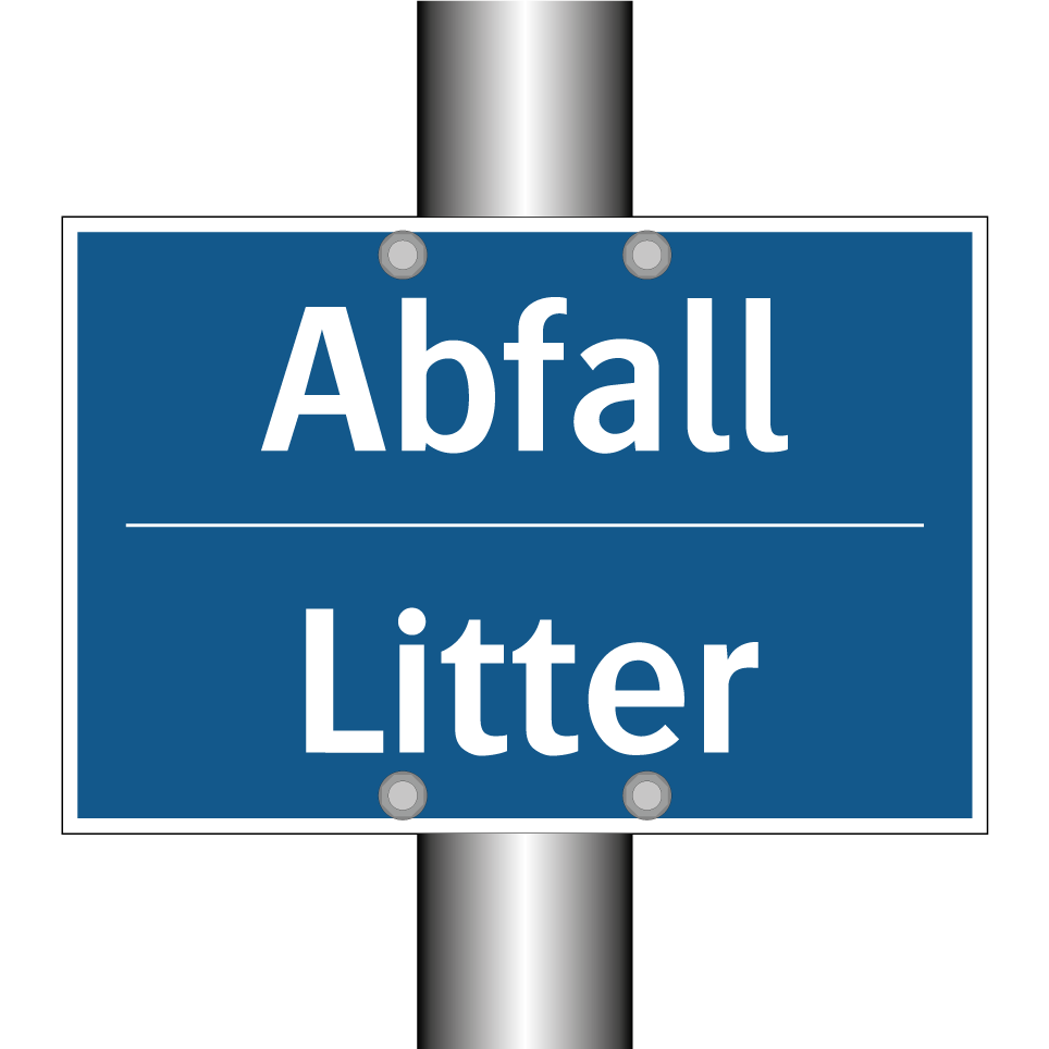 Zweisprachiges Verbotsschild mit deutschem Text Abfall und englischem Text Litter