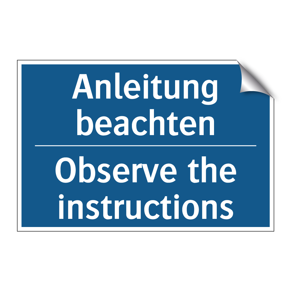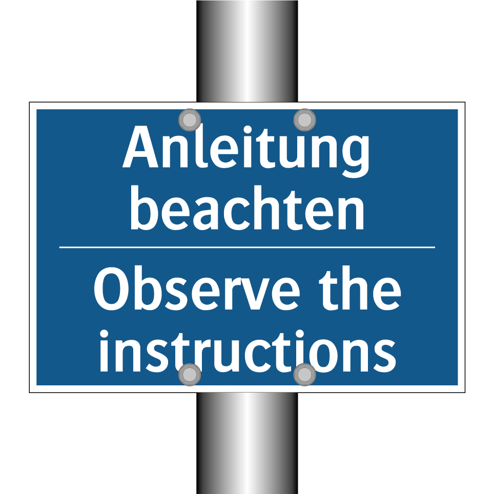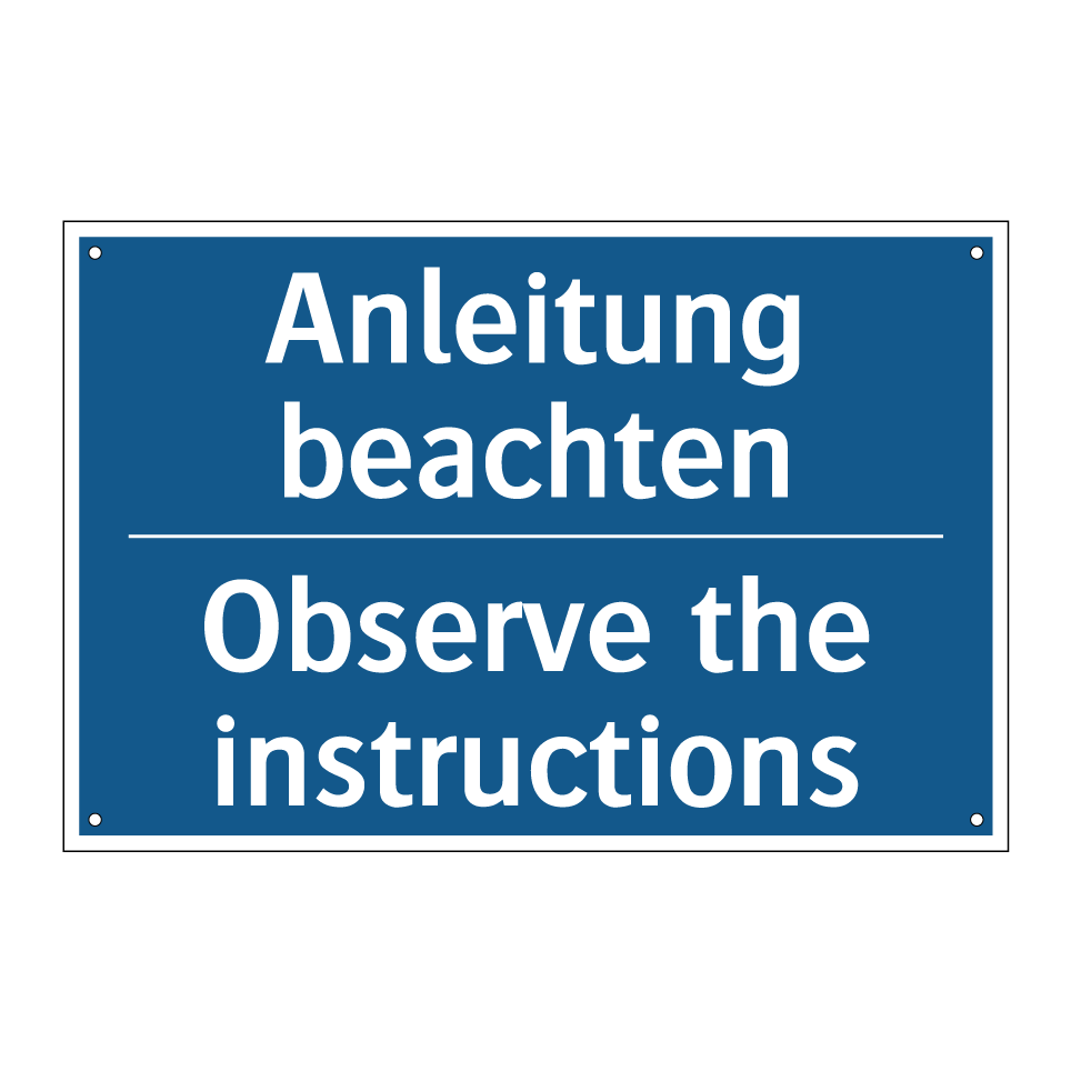 Zweisprachiges Verbotsschild mit deutschem Text Anleitung beachten und englischem Text Observe the instructions