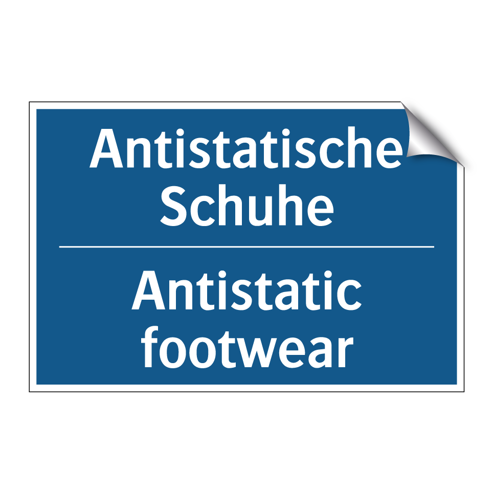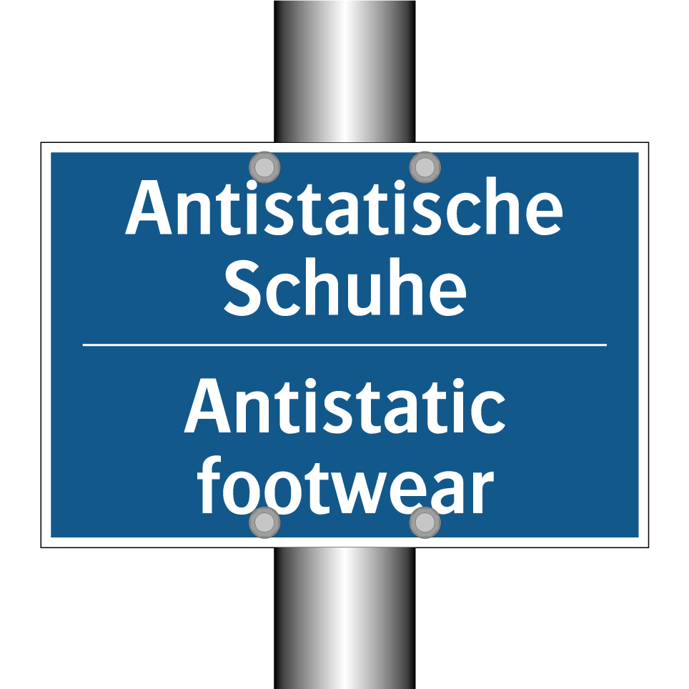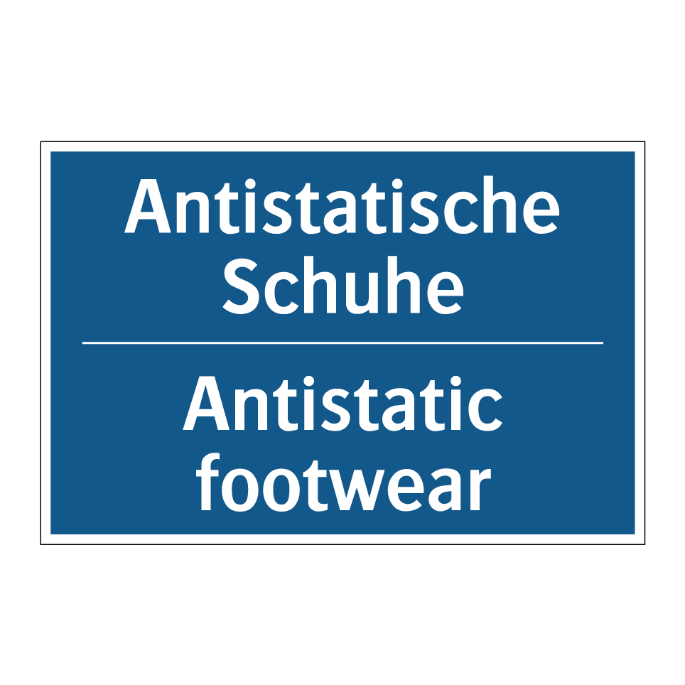 Zweisprachiges Verbotsschild mit deutschem Text Antistatische Schuhe und englischem Text Antistatic footwear