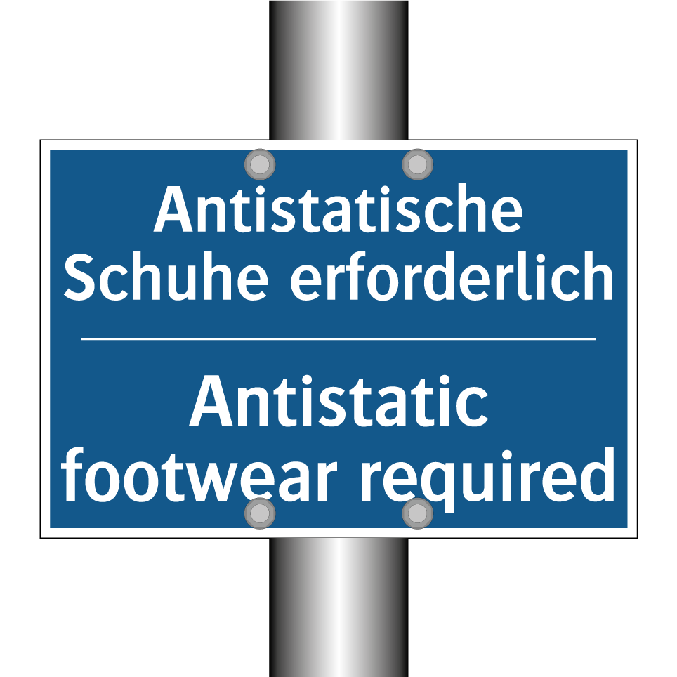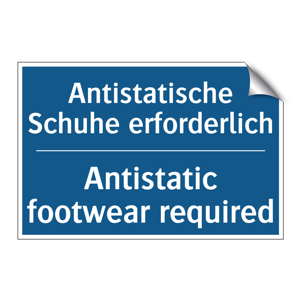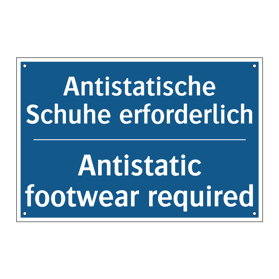 Zweisprachiges Verbotsschild mit deutschem Text Antistatische Schuhe erforderlich und englischem Text Antistatic footwear required