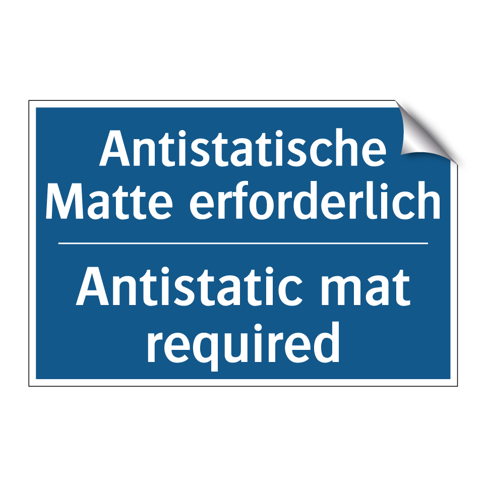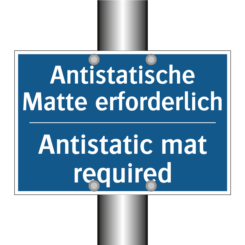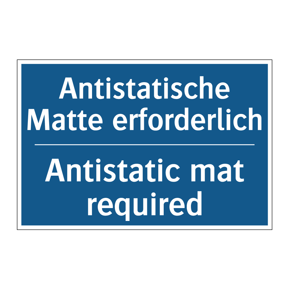 Zweisprachiges Verbotsschild mit deutschem Text Antistatische Matte erforderlich und englischem Text Antistatic mat required