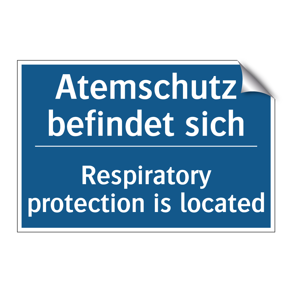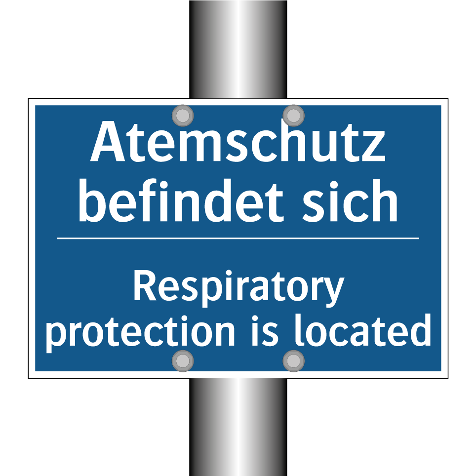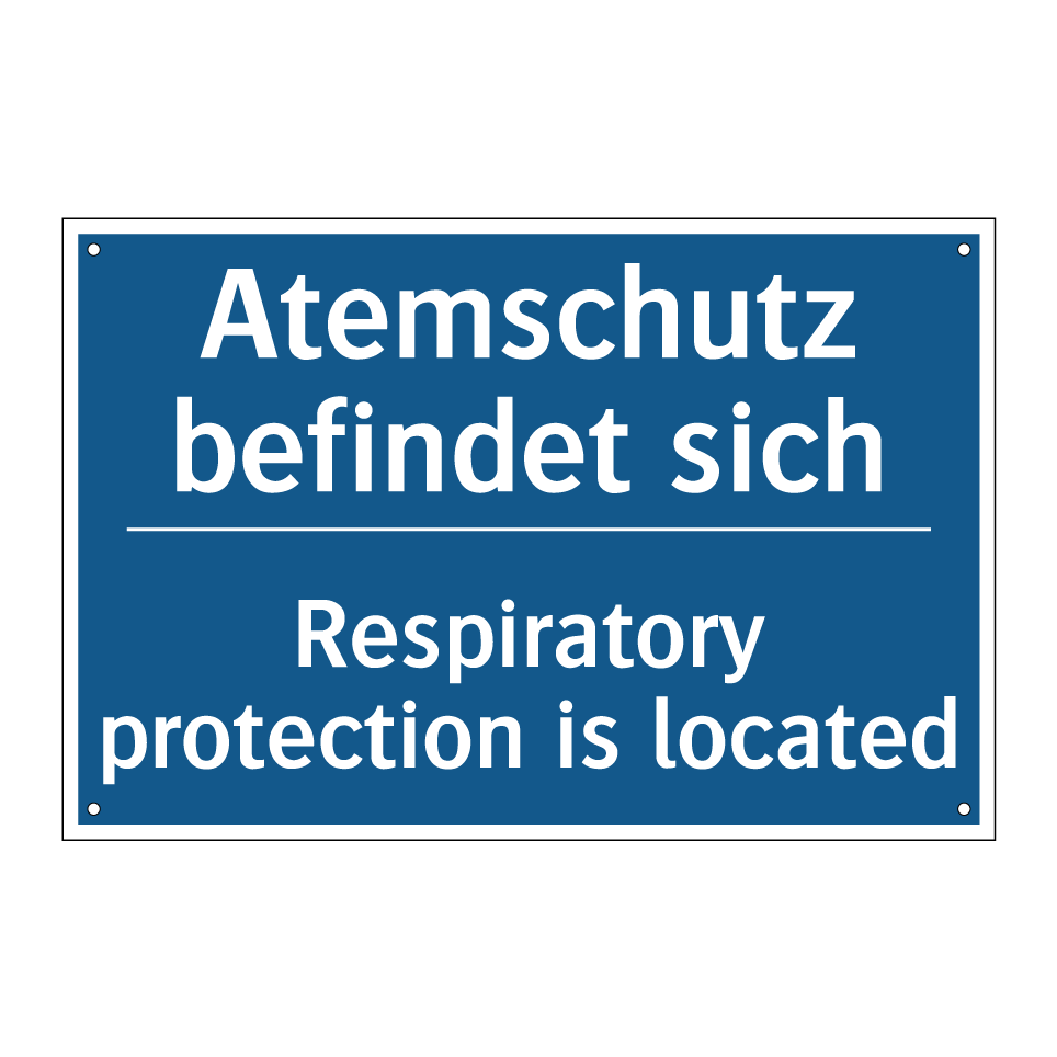 Zweisprachiges Verbotsschild mit deutschem Text Atemschutz befindet sich und englischem Text Respiratory protection is located
