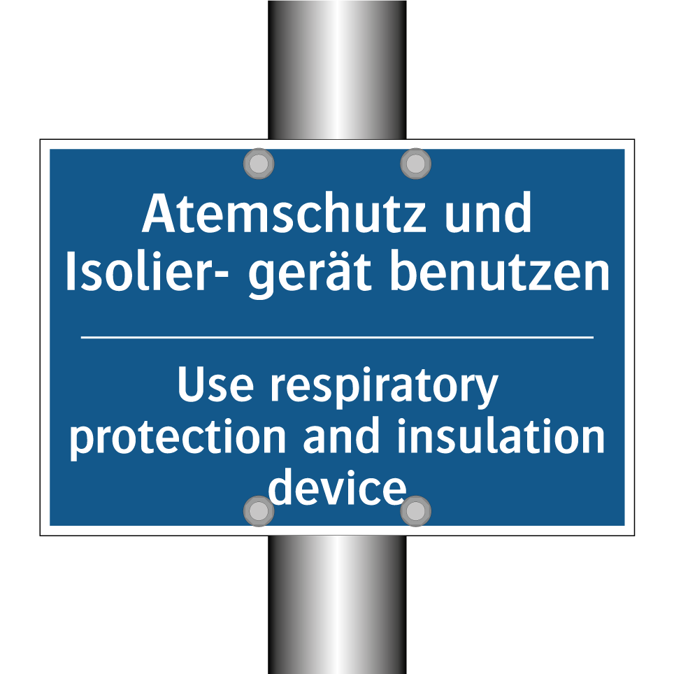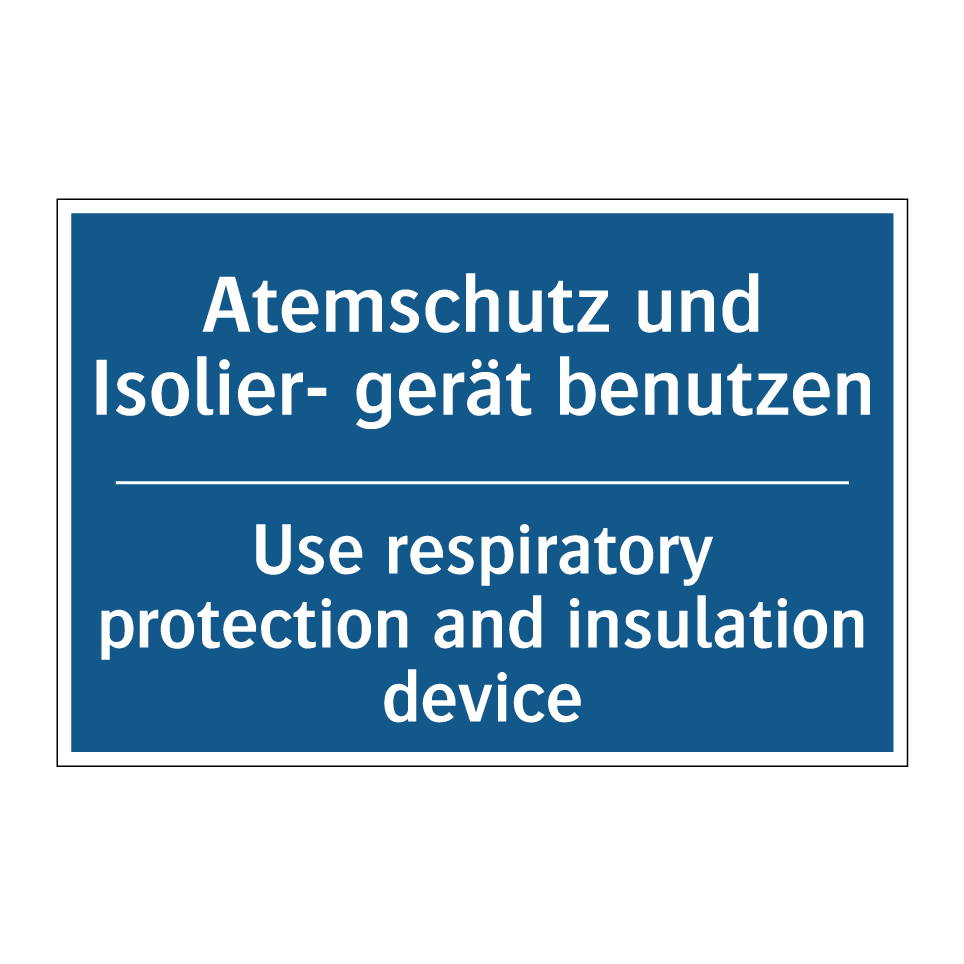 Diese Gebotsschild mit blauer Hintergrundfarbe und weißer Schrift ist ideal für den Einsatz in Bereichen, in denen Atemschutz und Isoliergeräte erforderlich sind. Dank der zweisprachigen Beschriftung auf Deutsch und Englisch eignet sich das Schild hervorragend für internationale Arbeitsumgebungen, in denen Sicherheit an erster Stelle steht. Es kann in Fabriken, Baustellen oder Laboren platziert werden, um sicherzustellen, dass alle Mitarbeiter und Besucher die notwendigen Schutzmaßnahmen ergreifen. Die klare und prägnante Botschaft des Schildes trägt dazu bei, das Bewusstsein für Sicherheitsvorschriften zu schärfen und die Einhaltung von Schutzmaßnahmen zu fördern.