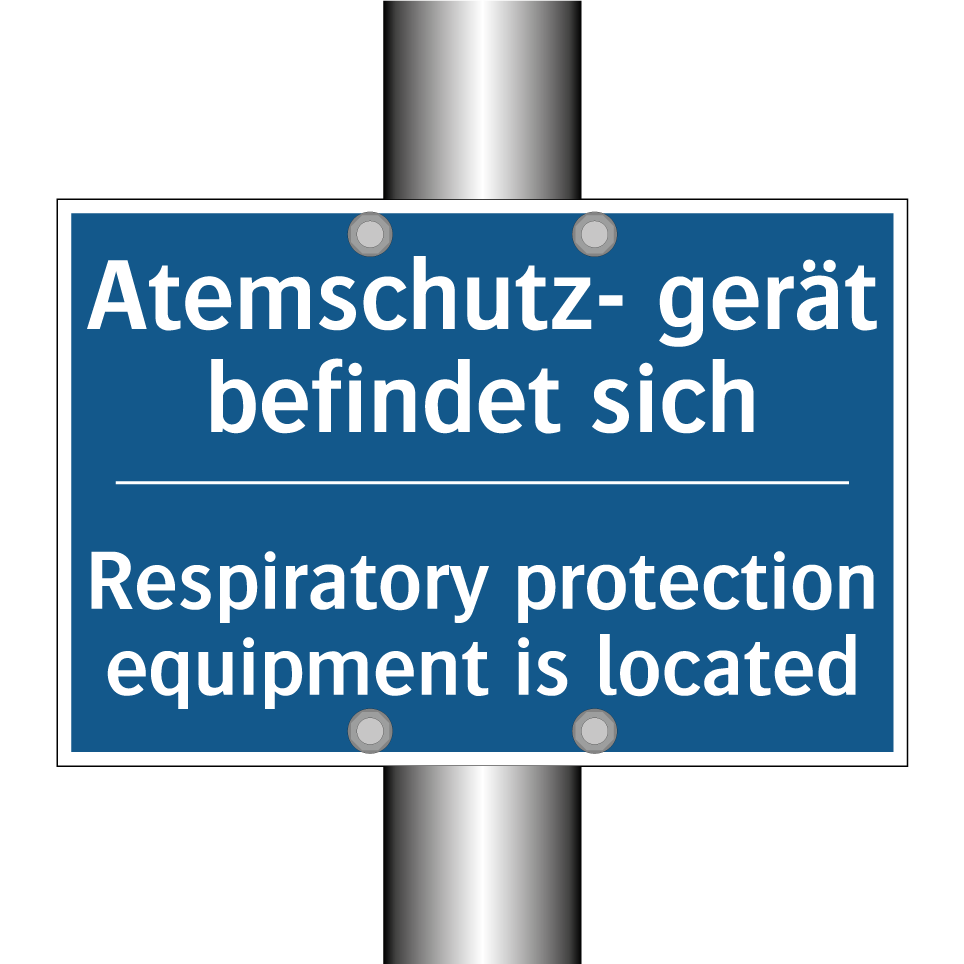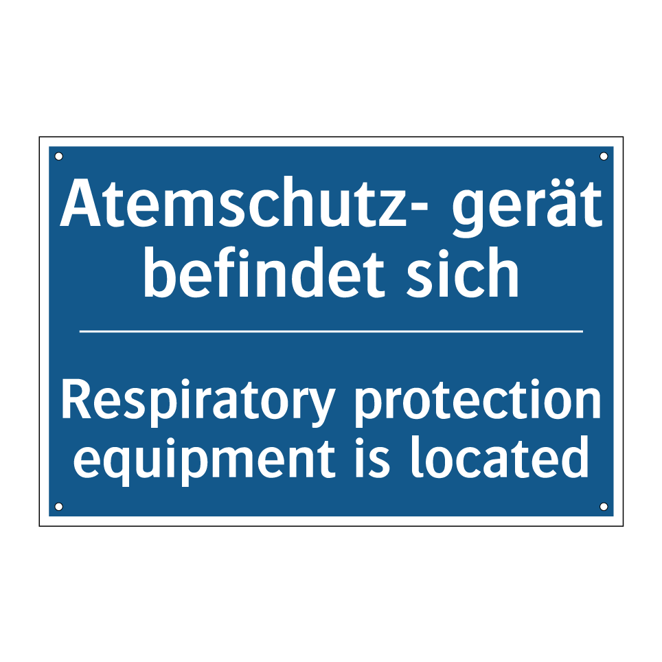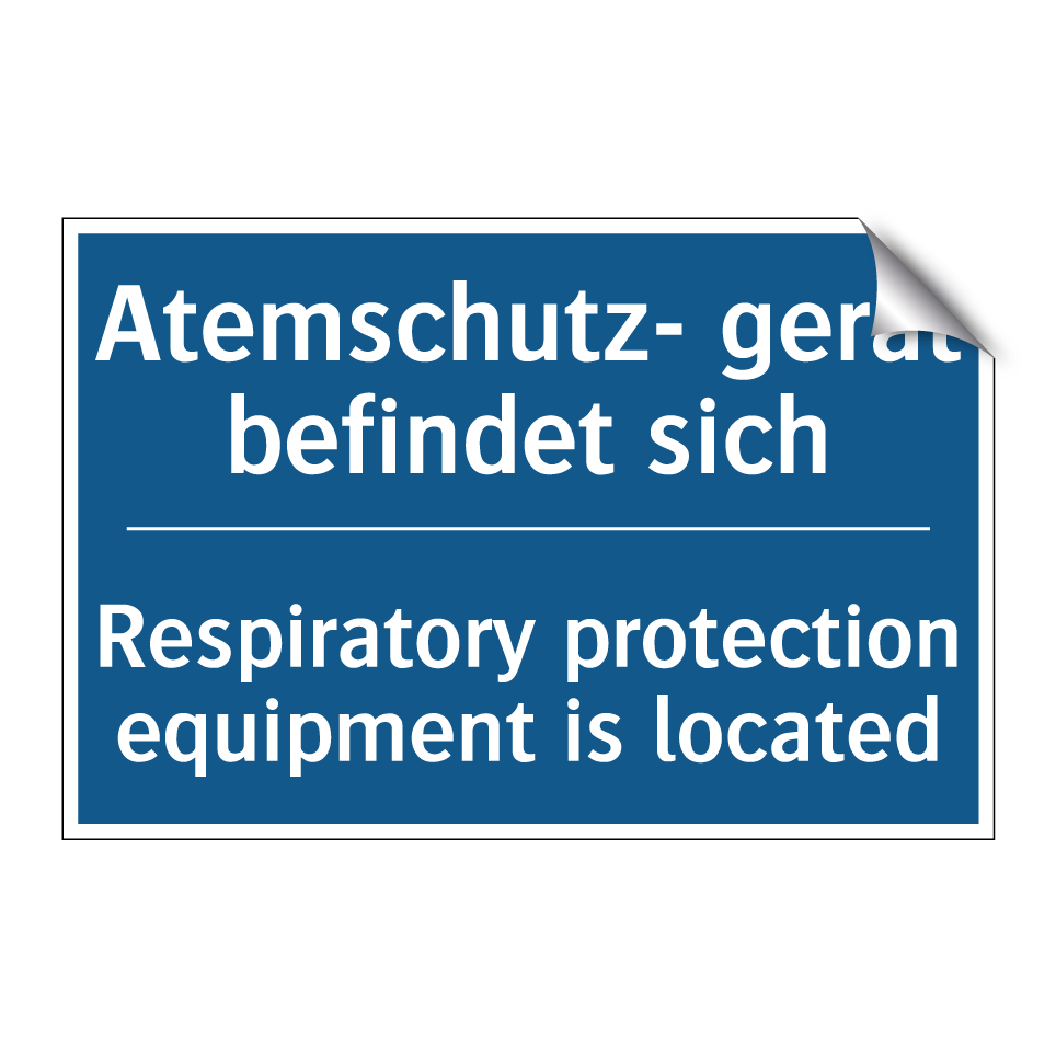 Zweisprachiges Verbotsschild mit deutschem Text Atemschutz- gerät befindet sich und englischem Text Respiratory protection equipment is located