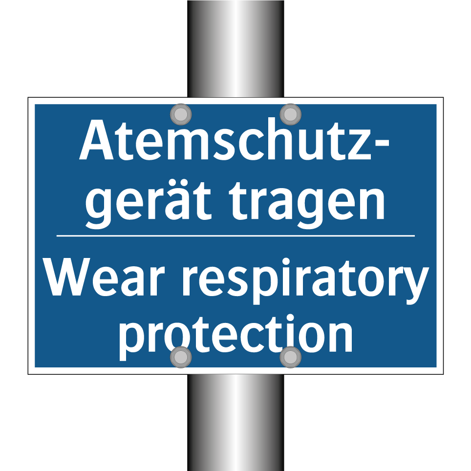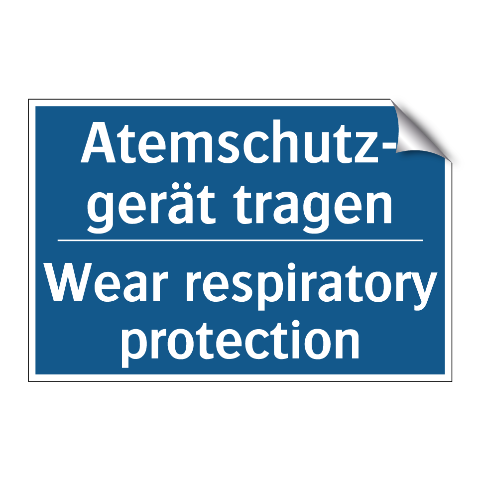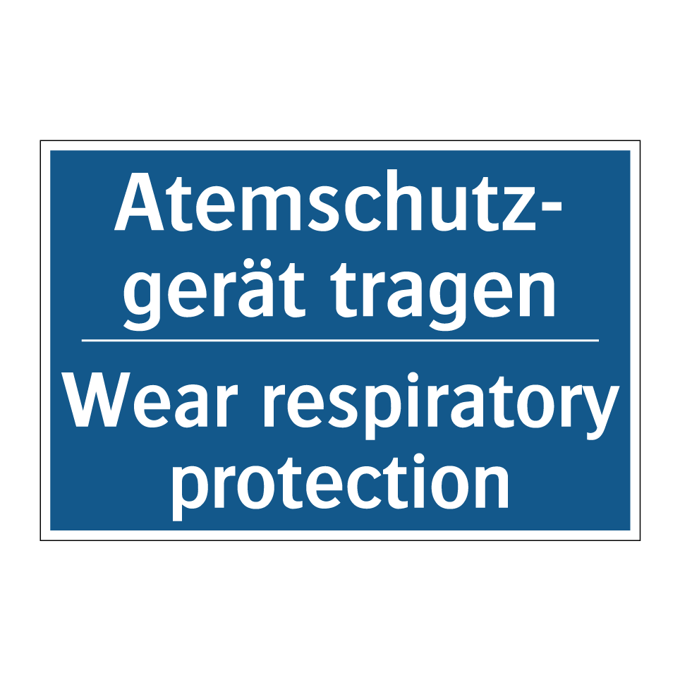 Zweisprachiges Verbotsschild mit deutschem Text Atemschutz- gerät tragen und englischem Text Wear respiratory protection