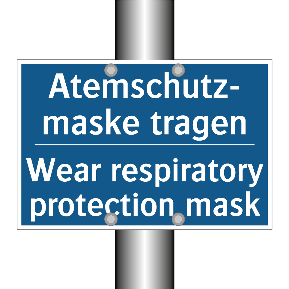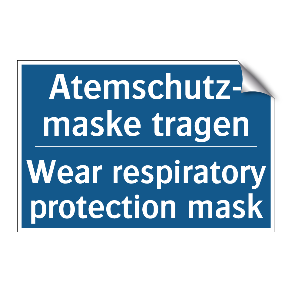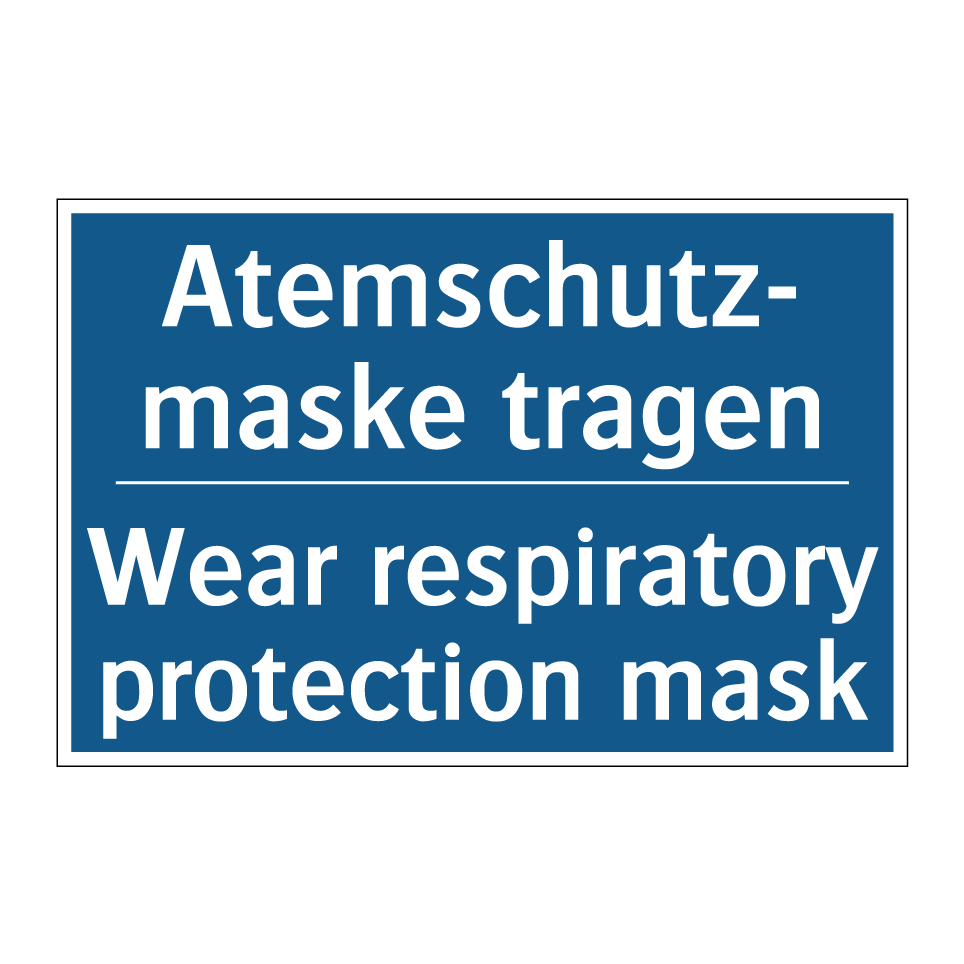 Zweisprachiges Verbotsschild mit deutschem Text Atemschutz- maske tragen und englischem Text Wear respiratory protection mask