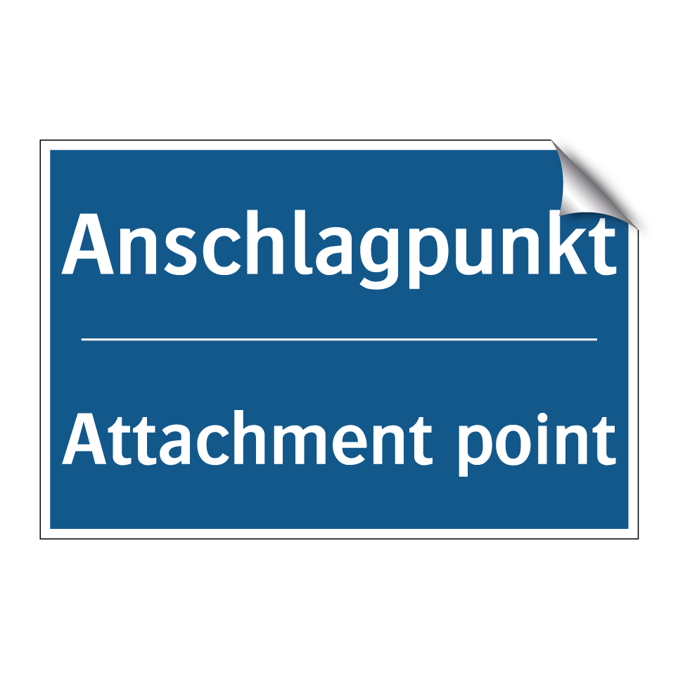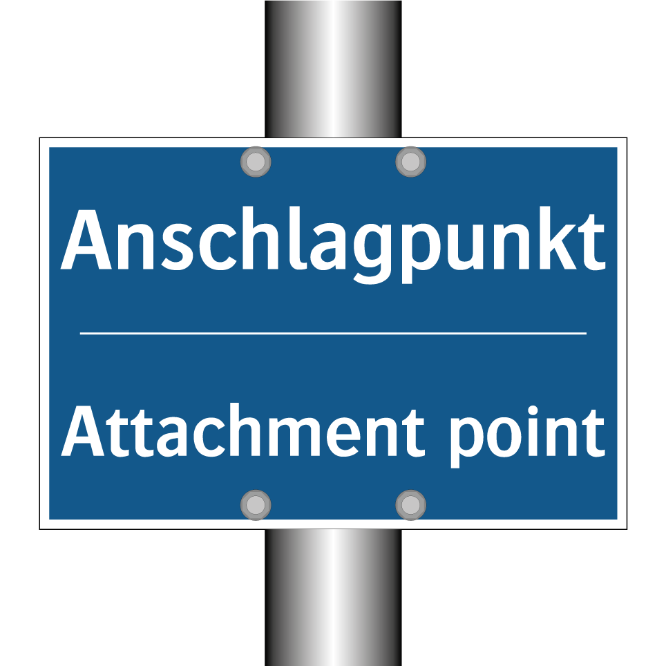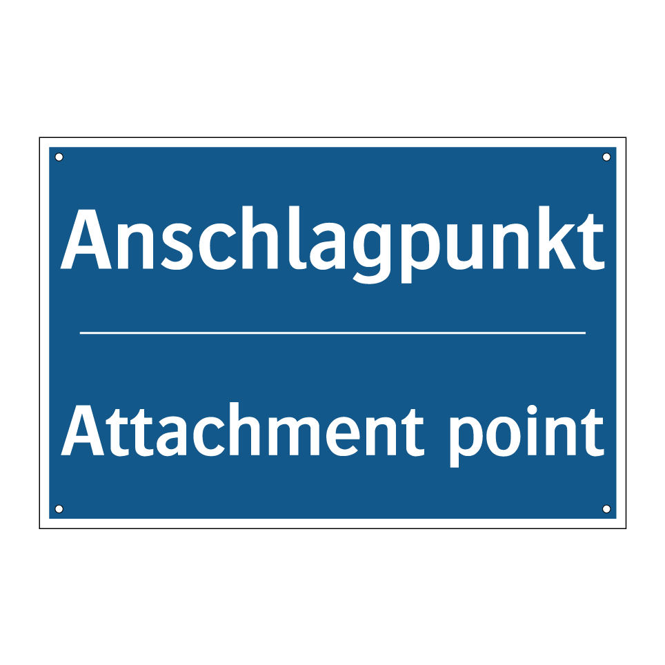 Zweisprachiges Verbotsschild mit deutschem Text Anschlagpunkt und englischem Text Attachment point