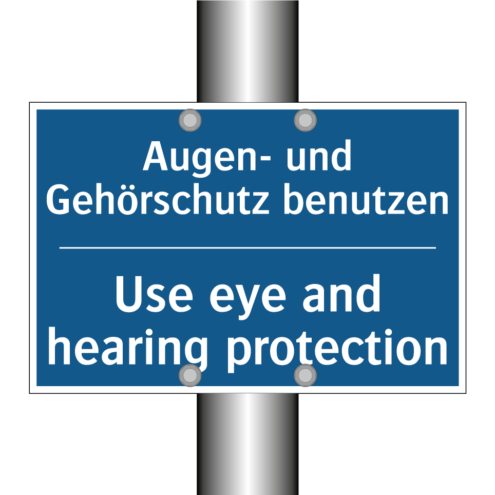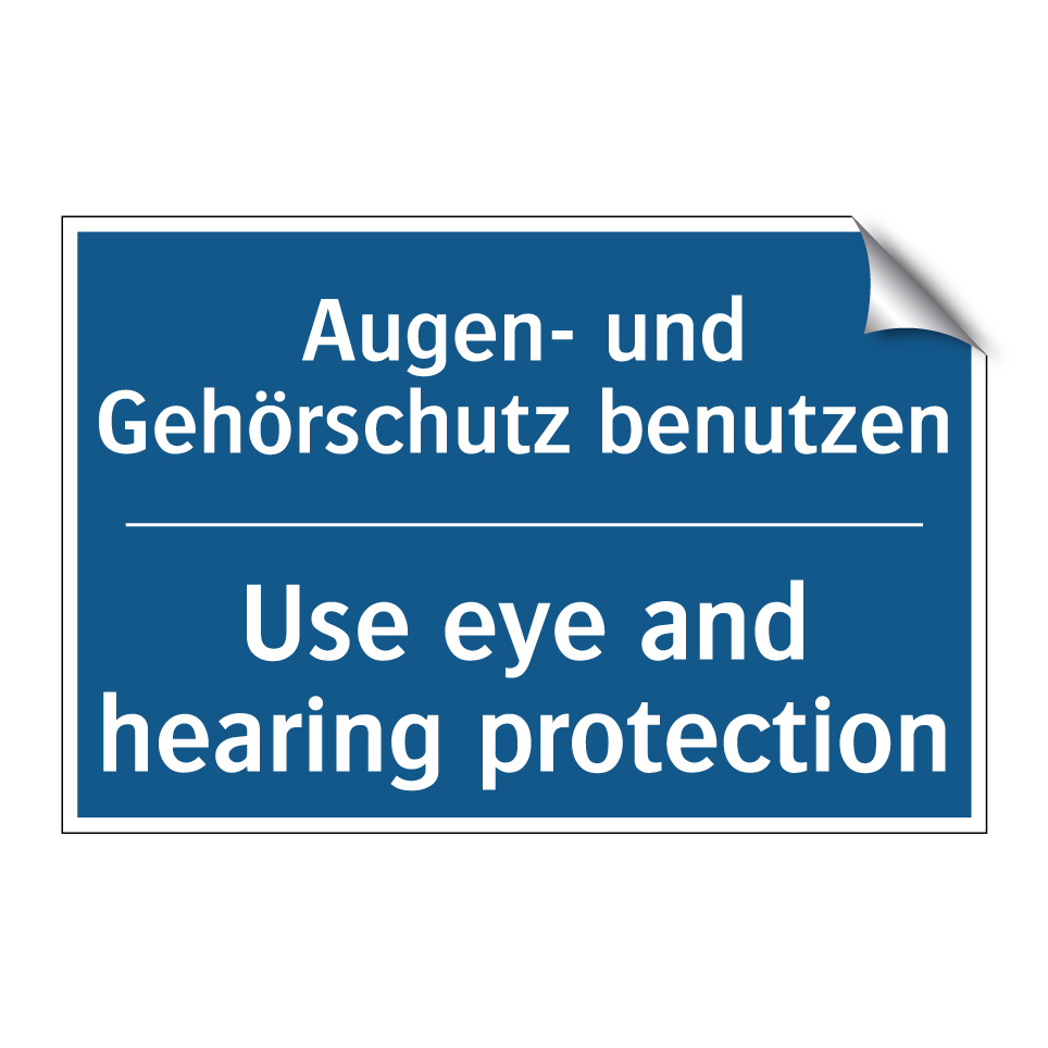 Entdecken Sie die Vielseitigkeit dieser Gebotsschild, die sowohl auf Deutsch als auch auf Englisch klare Anweisungen gibt. Diese zweisprachige Beschilderung ist ideal für internationale Arbeitsumgebungen, in denen Sicherheit oberste Priorität hat. Sie erinnert Mitarbeiter und Besucher daran, ihre Augen und Ohren zu schützen, und ist somit perfekt für Fabriken, Baustellen und Werkstätten geeignet. Platzieren Sie diese Gebotsschild an Eingängen, in Produktionsbereichen oder in der Nähe von Maschinen, um sicherzustellen, dass jeder die Sicherheitsvorschriften beachtet. Die klare blaue Hintergrundfarbe mit weißem Text sorgt dafür, dass die Botschaft sofort ins Auge fällt und leicht verständlich ist.