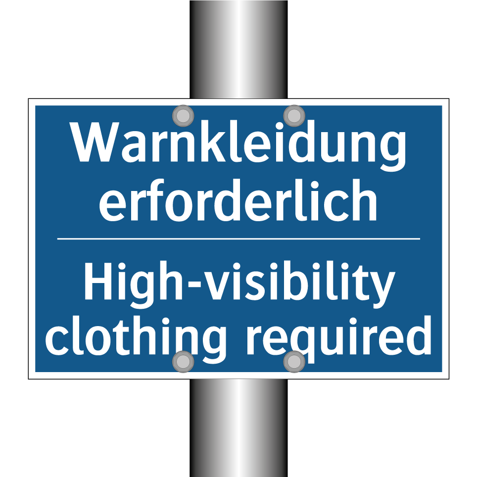Zweisprachiges Verbotsschild mit deutschem Text Warnkleidung erforderlich und englischem Text High-visibility clothing required