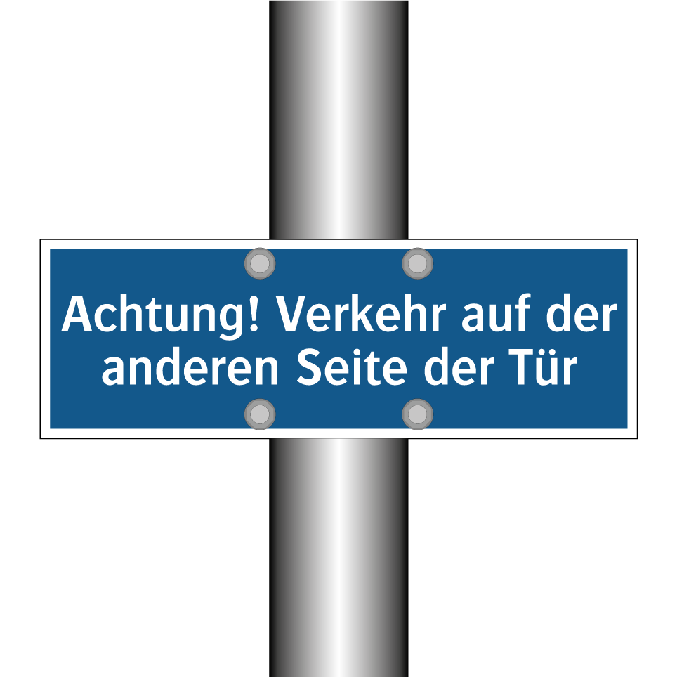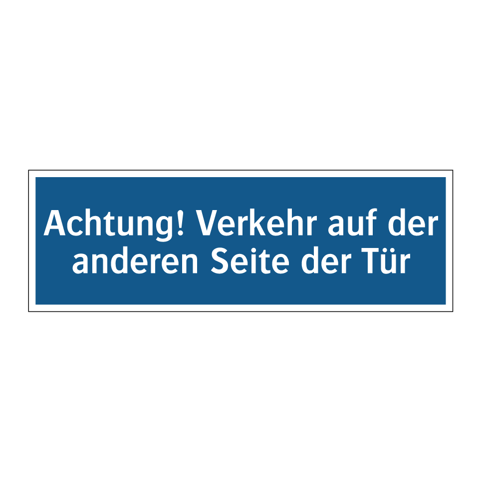 Gebotsschild mit dem Text Achtung! Verkehr auf der anderen Seite der Tür