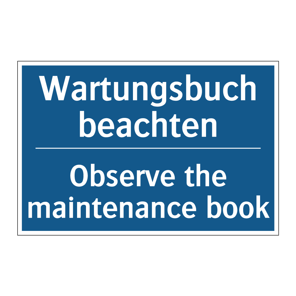 Zweisprachiges Verbotsschild mit deutschem Text Wartungsbuch beachten und englischem Text Observe the maintenance book