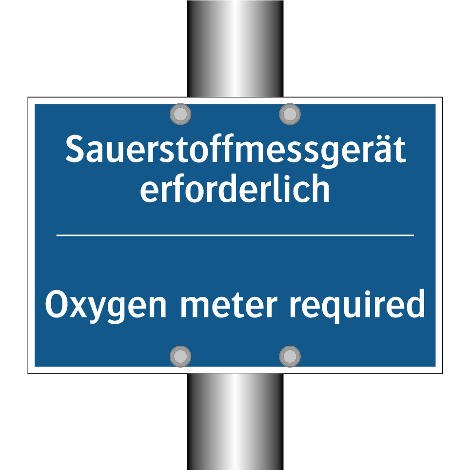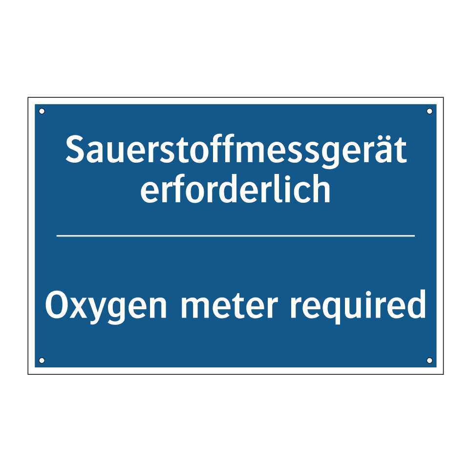 Zweisprachiges Verbotsschild mit deutschem Text Sauerstoffmessgerät erforderlich und englischem Text Oxygen meter required