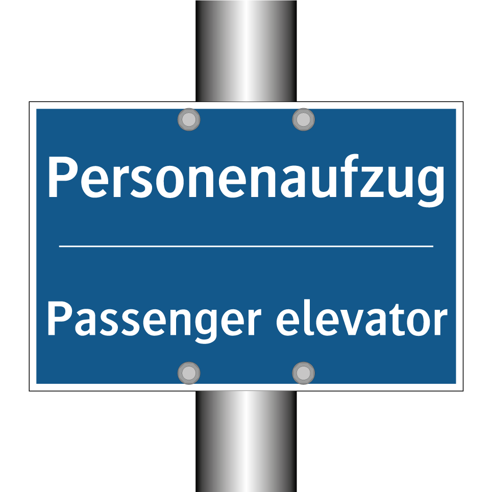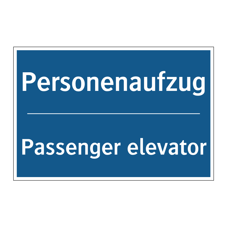 Zweisprachiges Verbotsschild mit deutschem Text Personenaufzug und englischem Text Passenger elevator