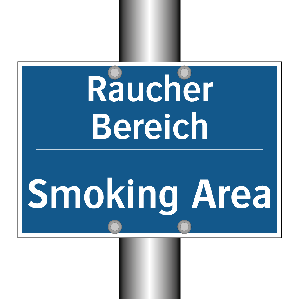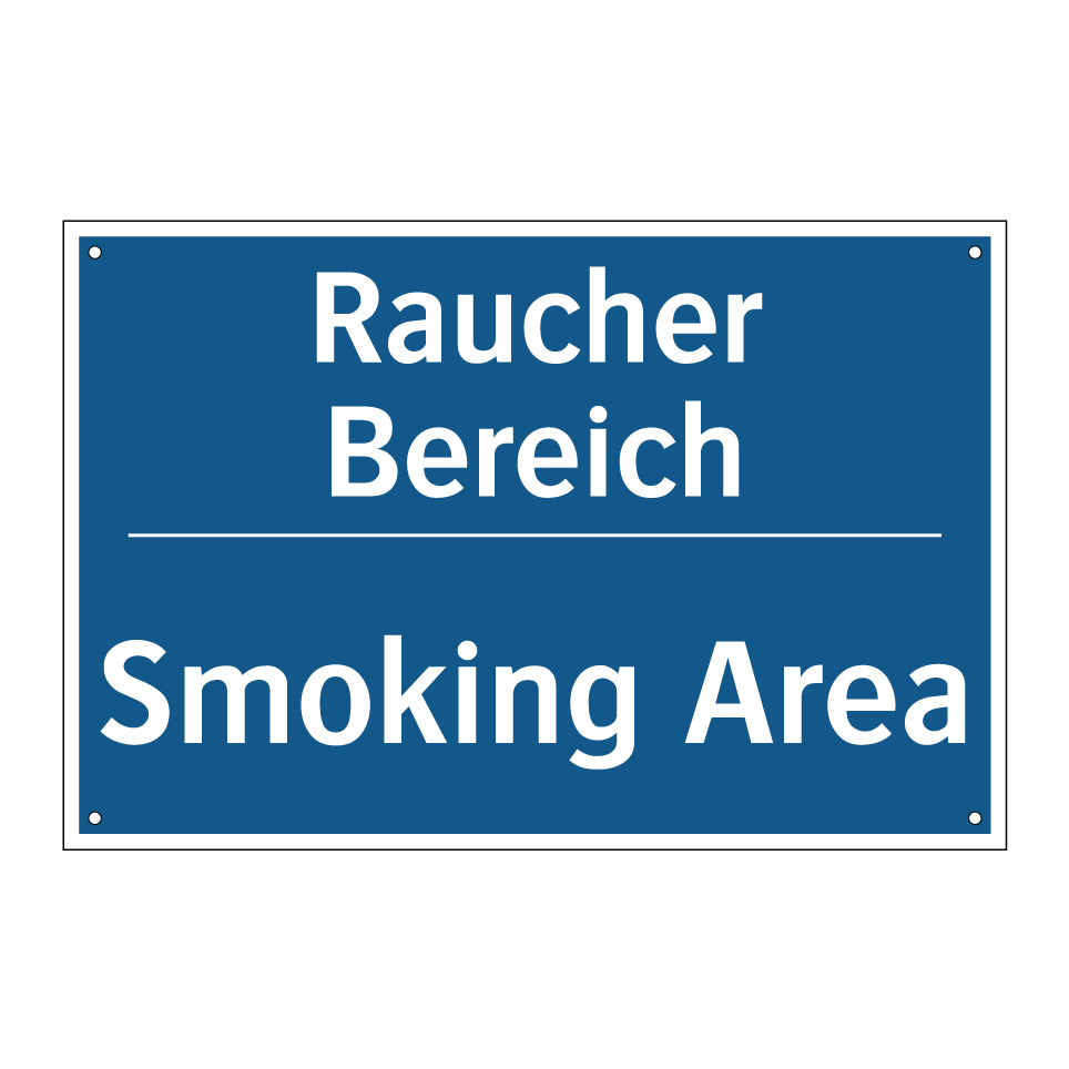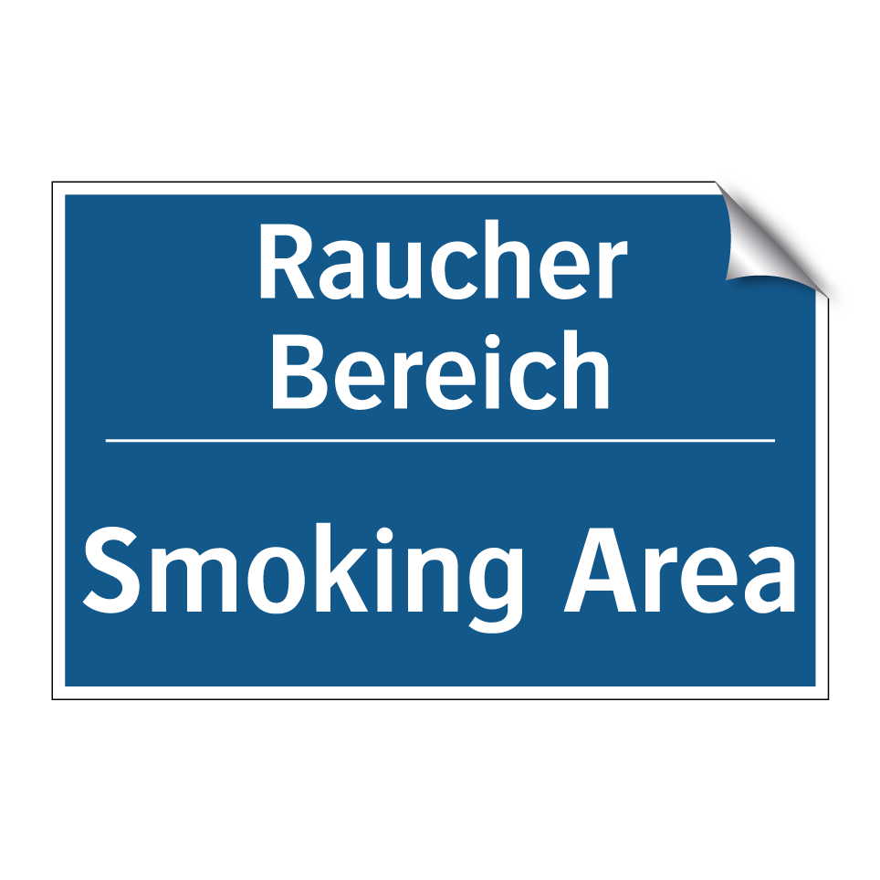 Zweisprachiges Verbotsschild mit deutschem Text Raucher Bereich und englischem Text Smoking Area