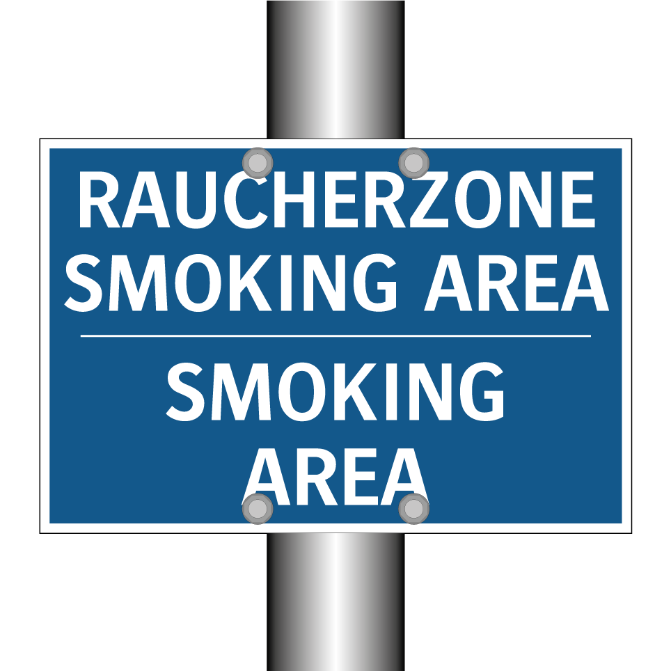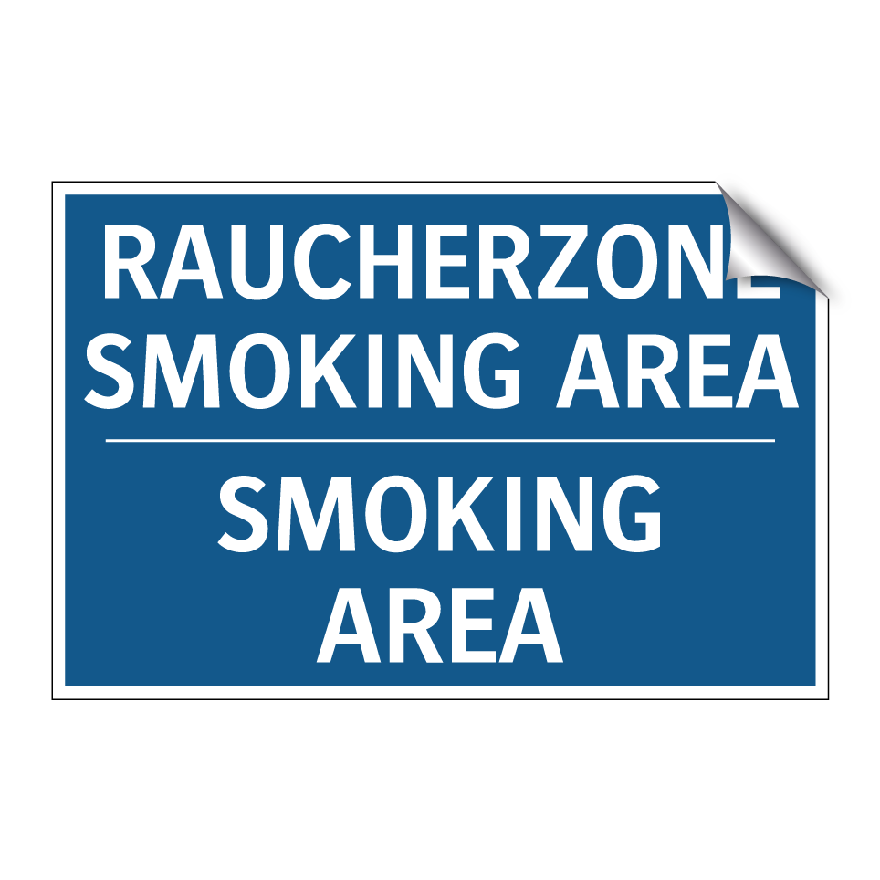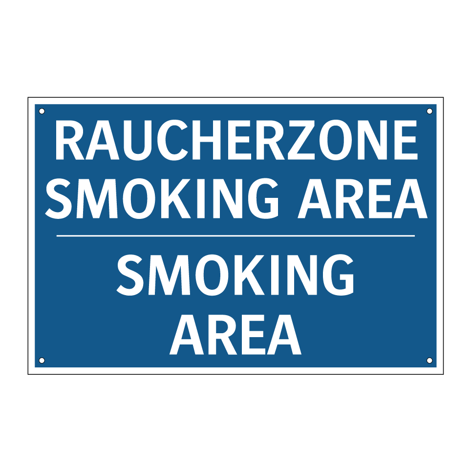 Zweisprachiges Verbotsschild mit deutschem Text RAUCHERZONE SMOKING AREA und englischem Text SMOKING AREA