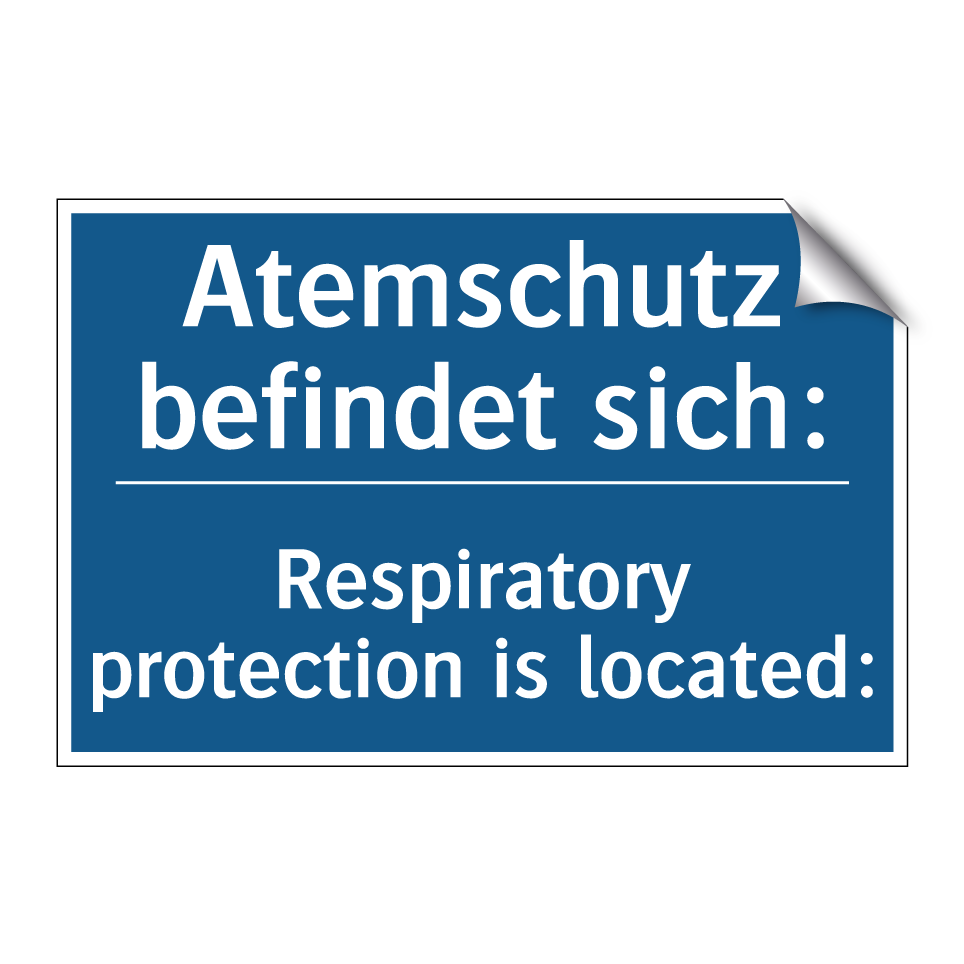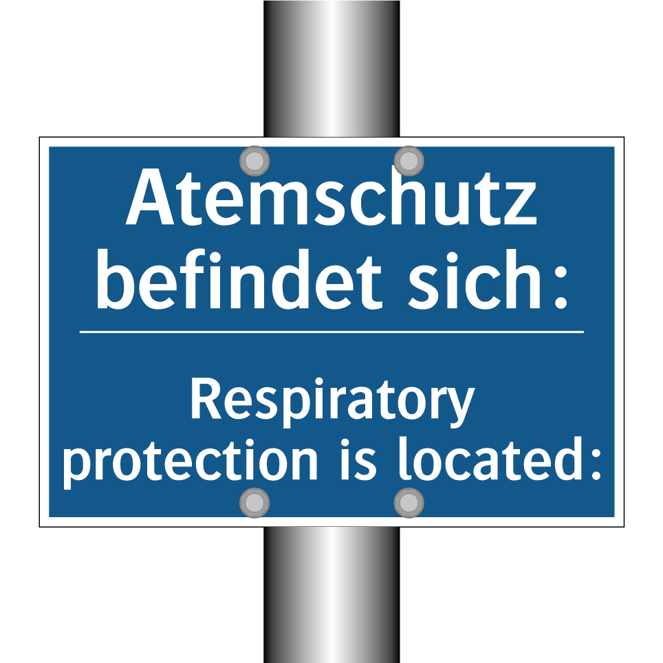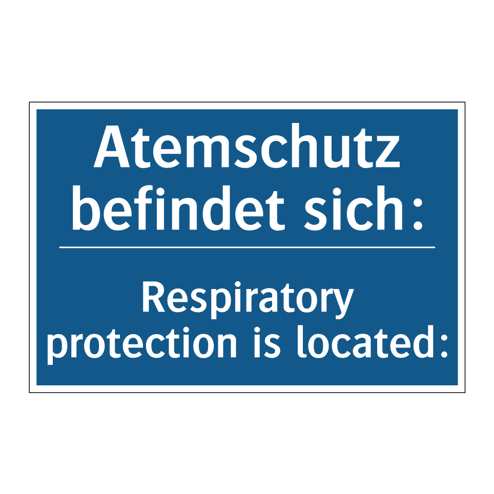 Zweisprachiges Verbotsschild mit deutschem Text Atemschutz befindet sich: und englischem Text Respiratory protection is located: