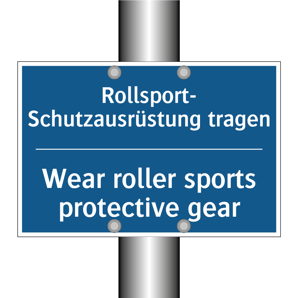 Zweisprachiges Verbotsschild mit deutschem Text Rollsport- Schutzausrüstung tragen und englischem Text Wear roller sports protective gear